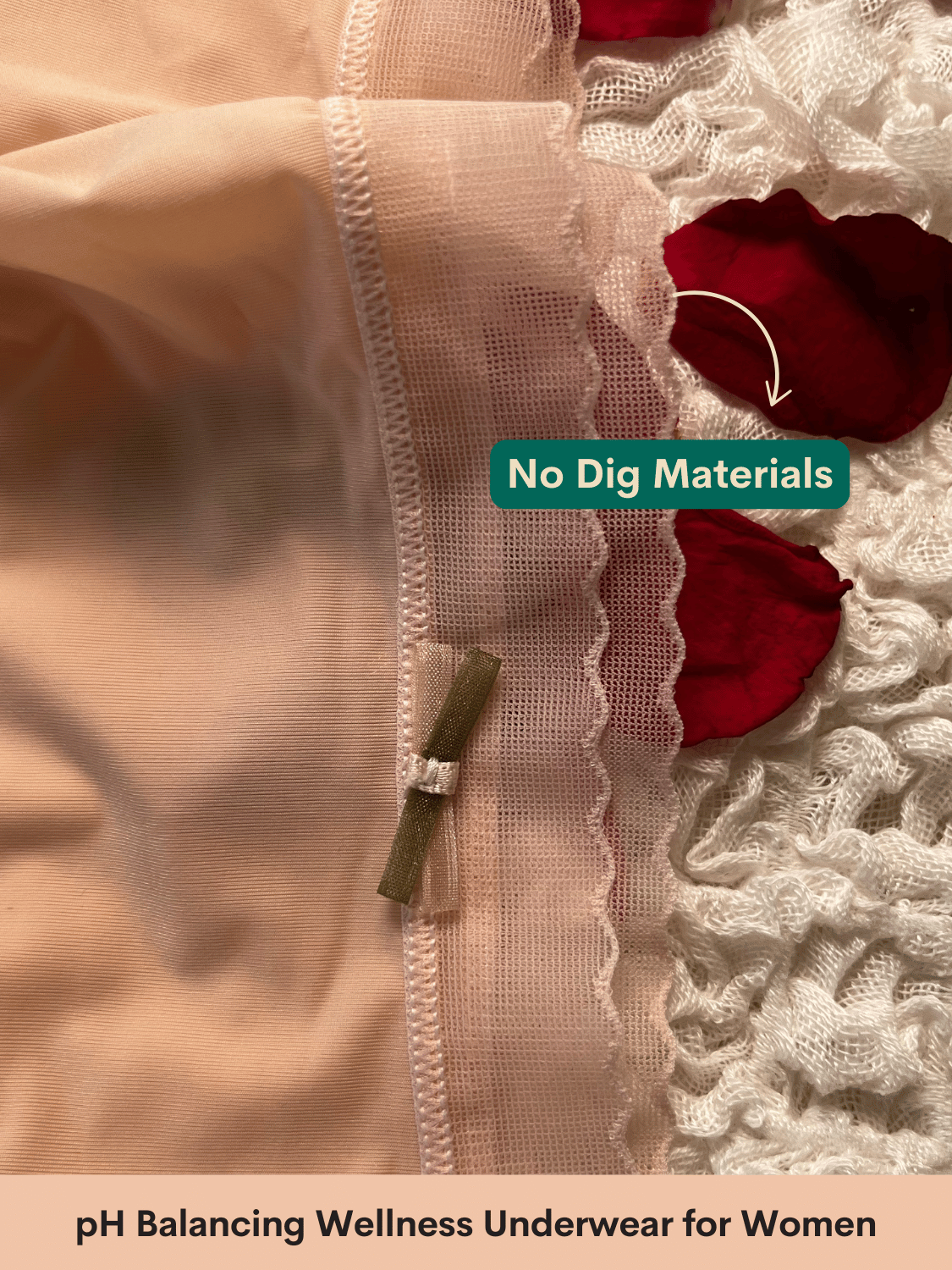 Layela combines plant-based lace elegance with everyday softness. Made with a cotton + PLA corn blend gusset and viscose outer body, this brief offers a cooling touch and airy breathability, especially for long wear and sensitive days.