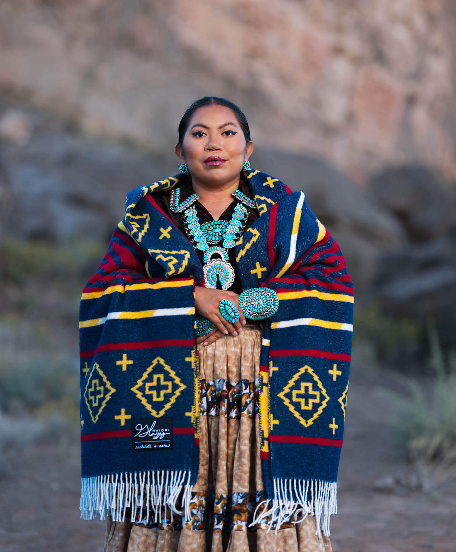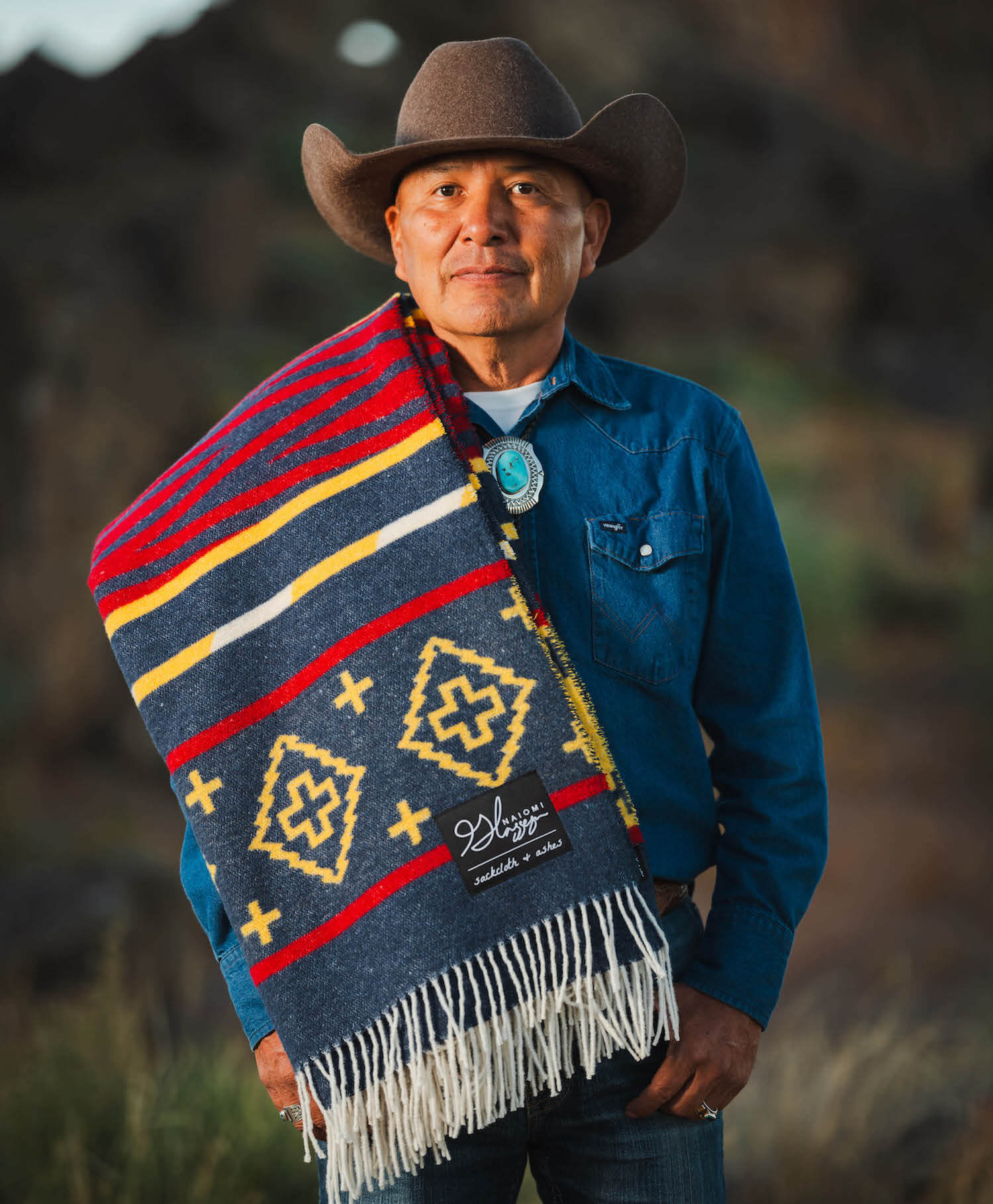 Tó Ałts'íísí (Little Water) by Naiomi Glasses. Introducing the Legacy Collection, a deeply meaningful collaborative collection featuring two exceptional artists, Diné weavers Naiomi Glasses and her brother Tyler Glasses. This collection draws inspiration from their family's cherished weaving tradition, paying tribute to their shared craft and Navajo heritage. Designed with love and expertise, rooted in their grandmother's teachings, each blanket tells a story of strength, unity, and the enduring bond within the family. This Collection stands as a testament to the legacy of craftsmanship and artistry flourishing across generations.