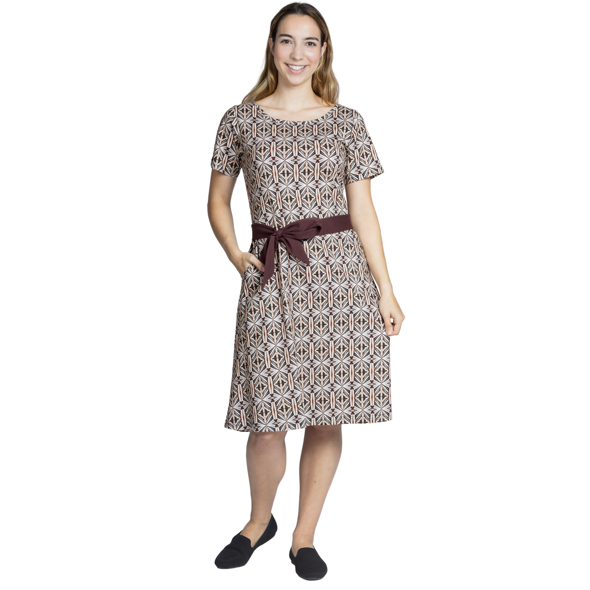 Literary Illusion Belted A-Line Dress (No Waist Seam)