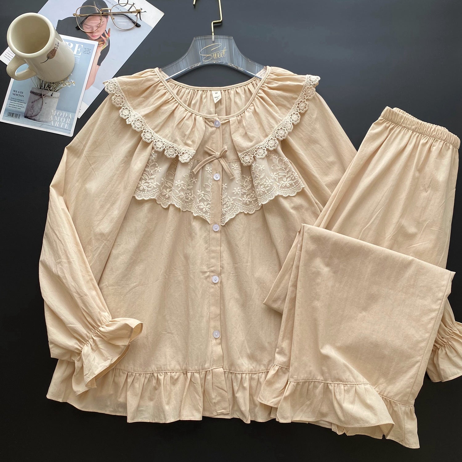 Lucie Lace Collar Cotton Pajama Set / Almond Cream