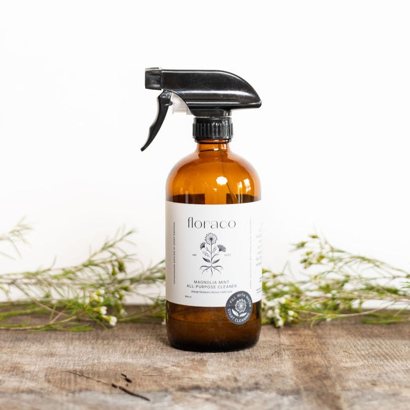 The Magnolia Mint Household Cleaner was created to make the ritual of cleaning more enjoyable. Cleaning should be free of toxins, sustainable, good for the earth and arousing to the senses.