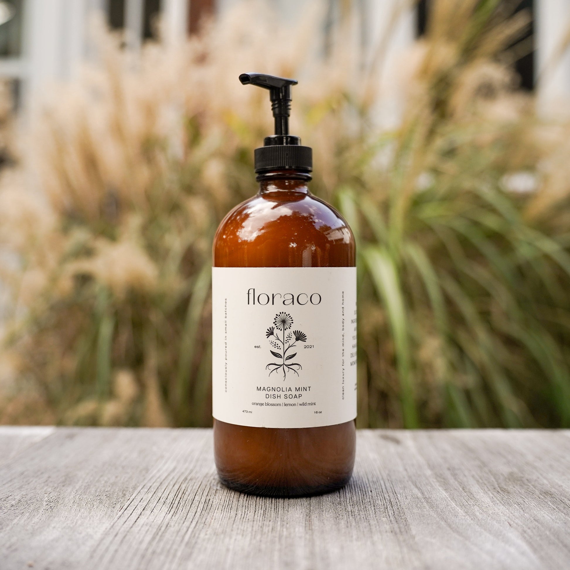 Magnolia Mint Refillable Glass Dish Soap: Wild Mint, Orange Blossom, Eucalyptus, Lemon, Mint + Tomato Leaf Scented