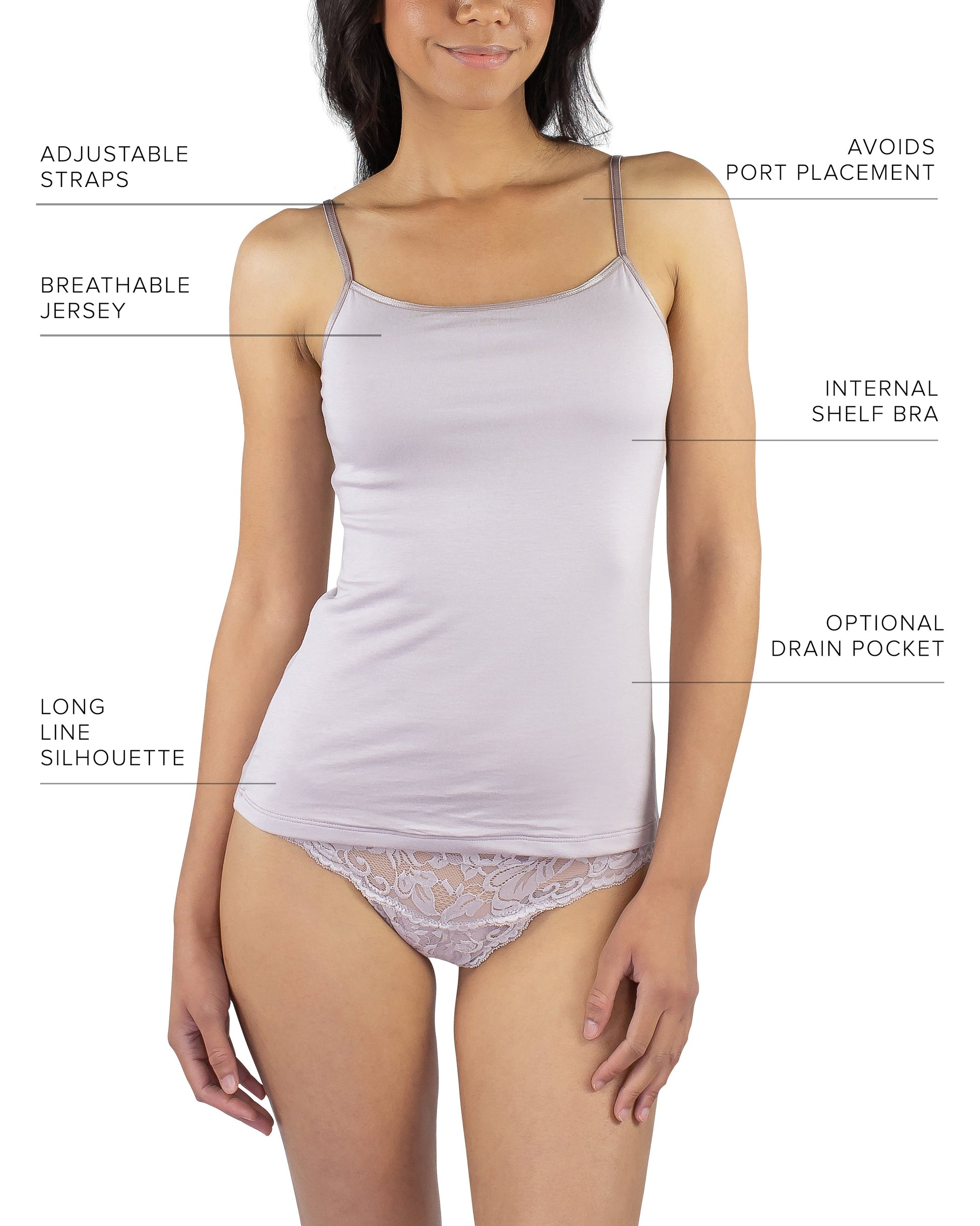 Maia Cami – Soft, supportive, and designed for life’s transitions. With a built-in shelf bra and breathable, eco-friendly jersey, it offers light support and all-day comfort. Thoughtfully designed with optional drain pockets and adjustable straps, it adapts to your body’s needs—whether you're healing, layering, or simply embracing everyday ease.
