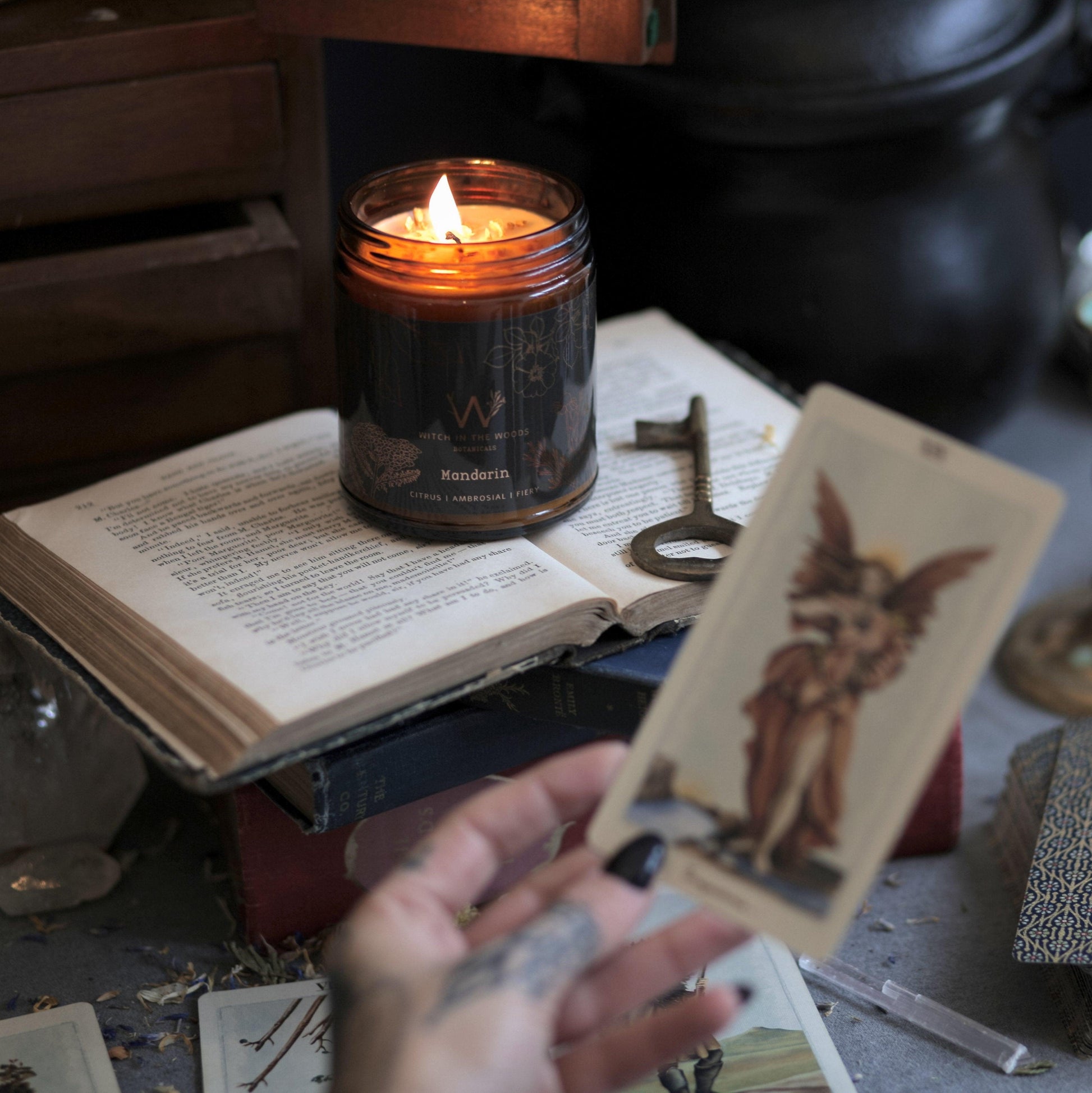 Our Mandarin Soy Candle is a delightful infusion of citrus magick. The succulent scent of mandarin oranges envelops the air, cleansing and refreshing your space with its invigorating properties.