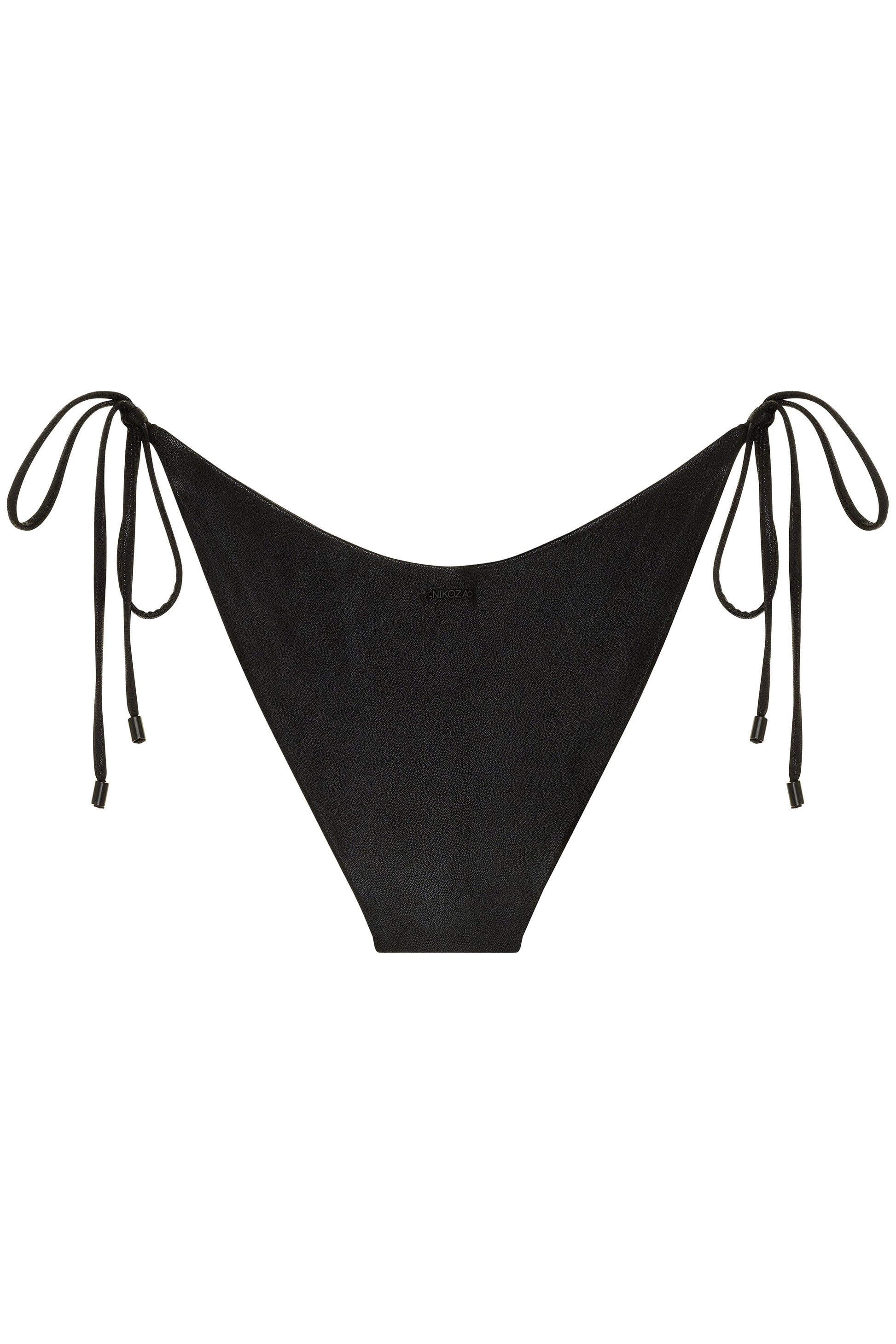 This Mariposa bikini bottom in shimmering black color features full coverage with side ties adorned with butterfly accessories on the front. It has sleek and stylish design. The full coverage will give you comfortable fit and provides ample support. Whether you lounging by the pool or enjoying a day at the beach this bikini bottom is ensures to make a statement and enhance your confidence!
