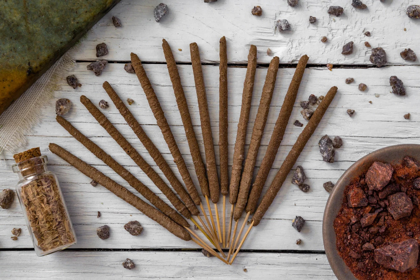 Our handcrafted Artisanal incense produces a rich, earthy, and pure aroma. Used to purify your space or as an aid for meditation, these ancient recipes help to soothe a restless mind.
