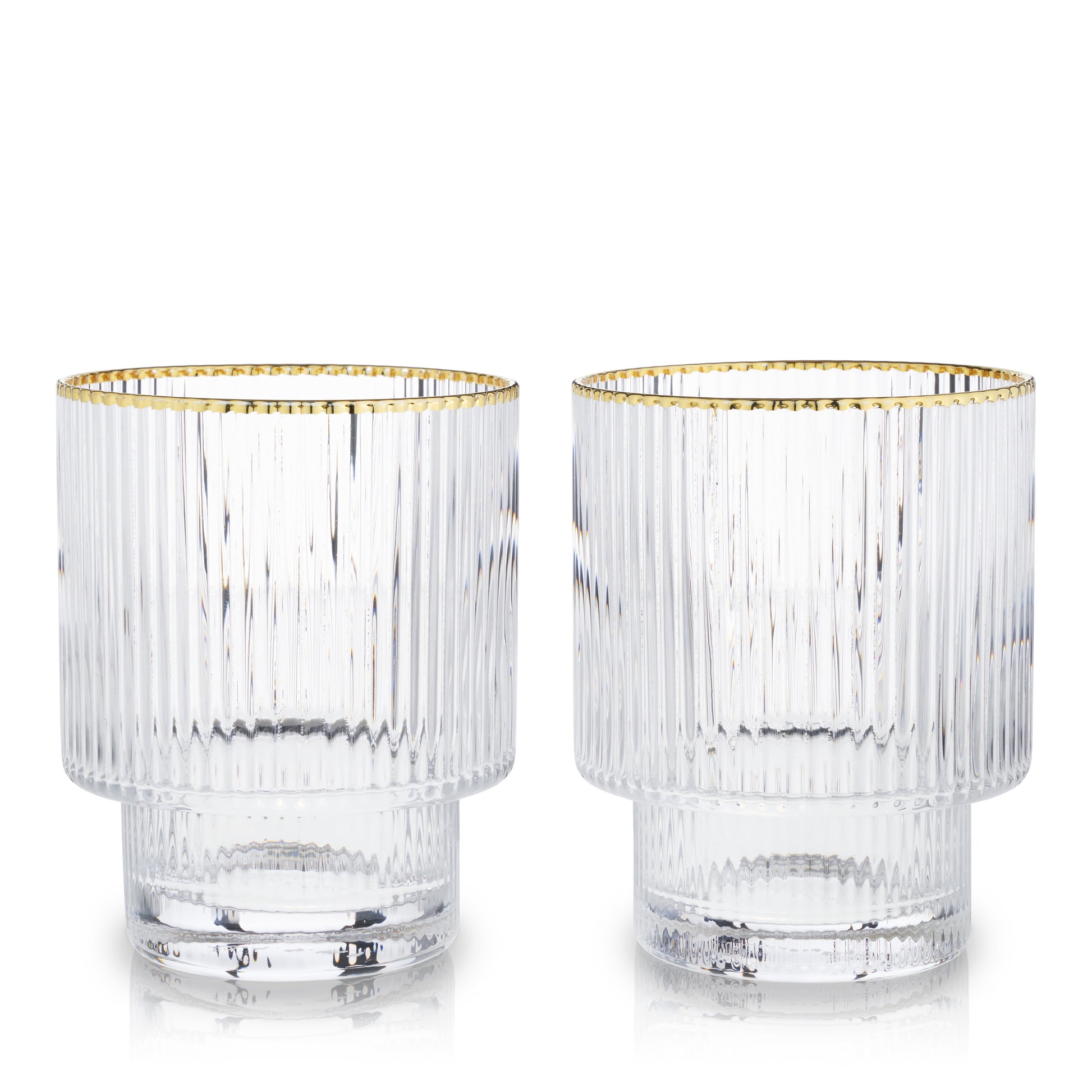 With stunning clarity and a rippled texture, this pair of gold-rimmed tumblers brings understated elegance to any cocktail. This stackable glassware has a subtly contemporary shape that enhances your sipping experience and complements any decor style.