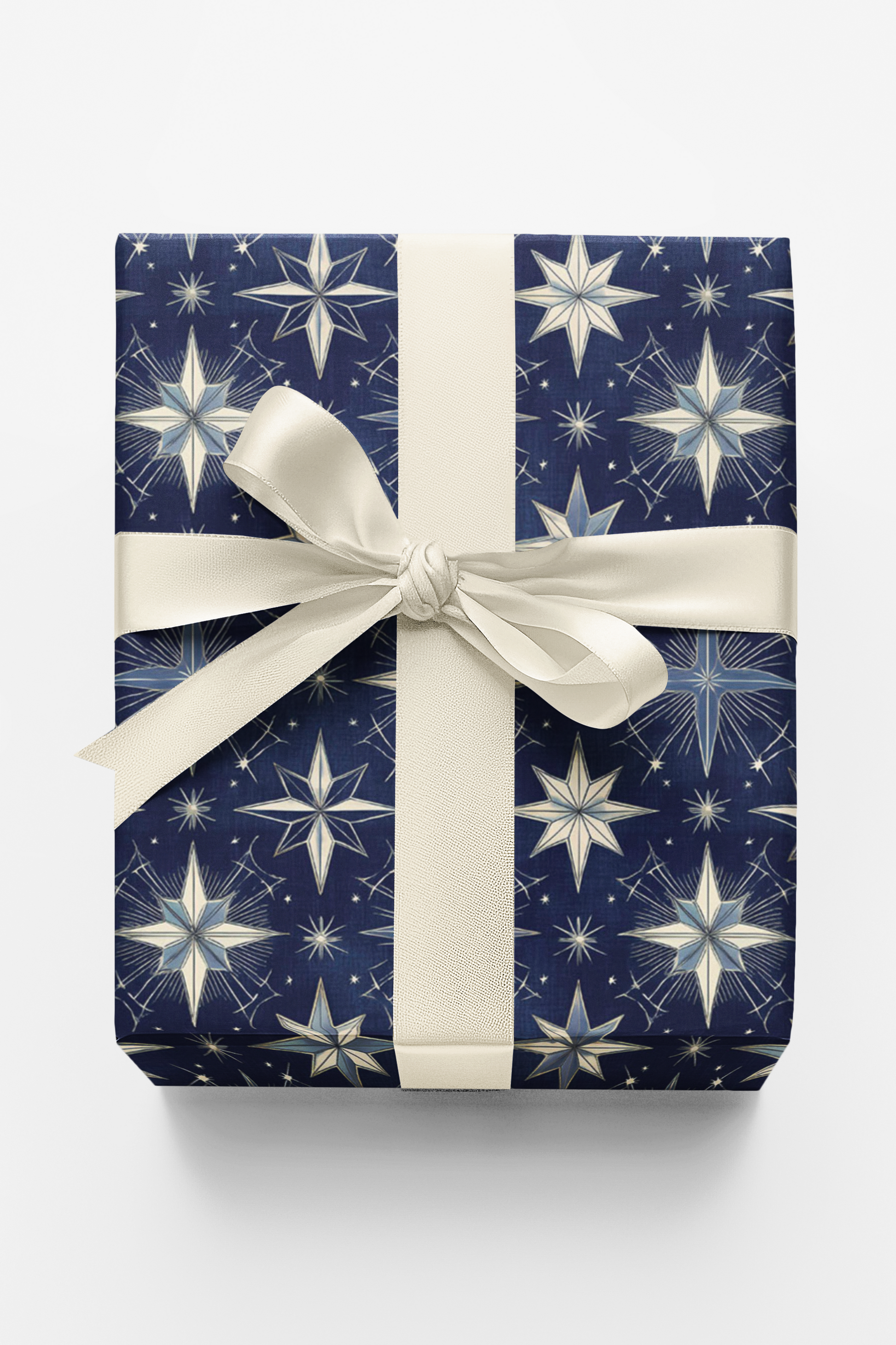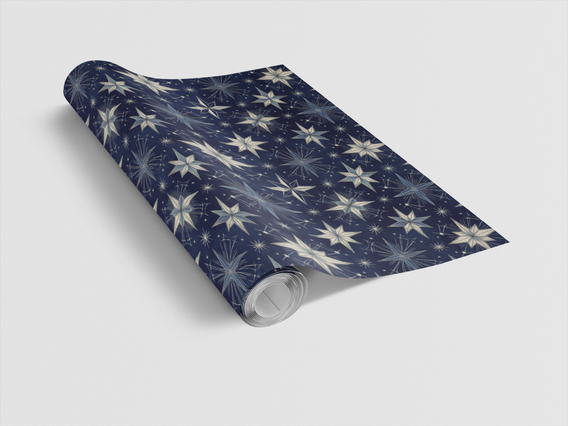 Add celestial elegance to your gifts with our Midnight Noel wrapping paper! This stunning design features a pattern of stars and radiant bursts in soft cream, silver-blue, and deep midnight blue, evoking the beauty of a starlit winter sky. Perfect for Christmas, Hanukkah, winter birthdays, or any occasion that calls for a magical and refined presentation. Crafted from high-quality, durable paper for an enchanting finish.
