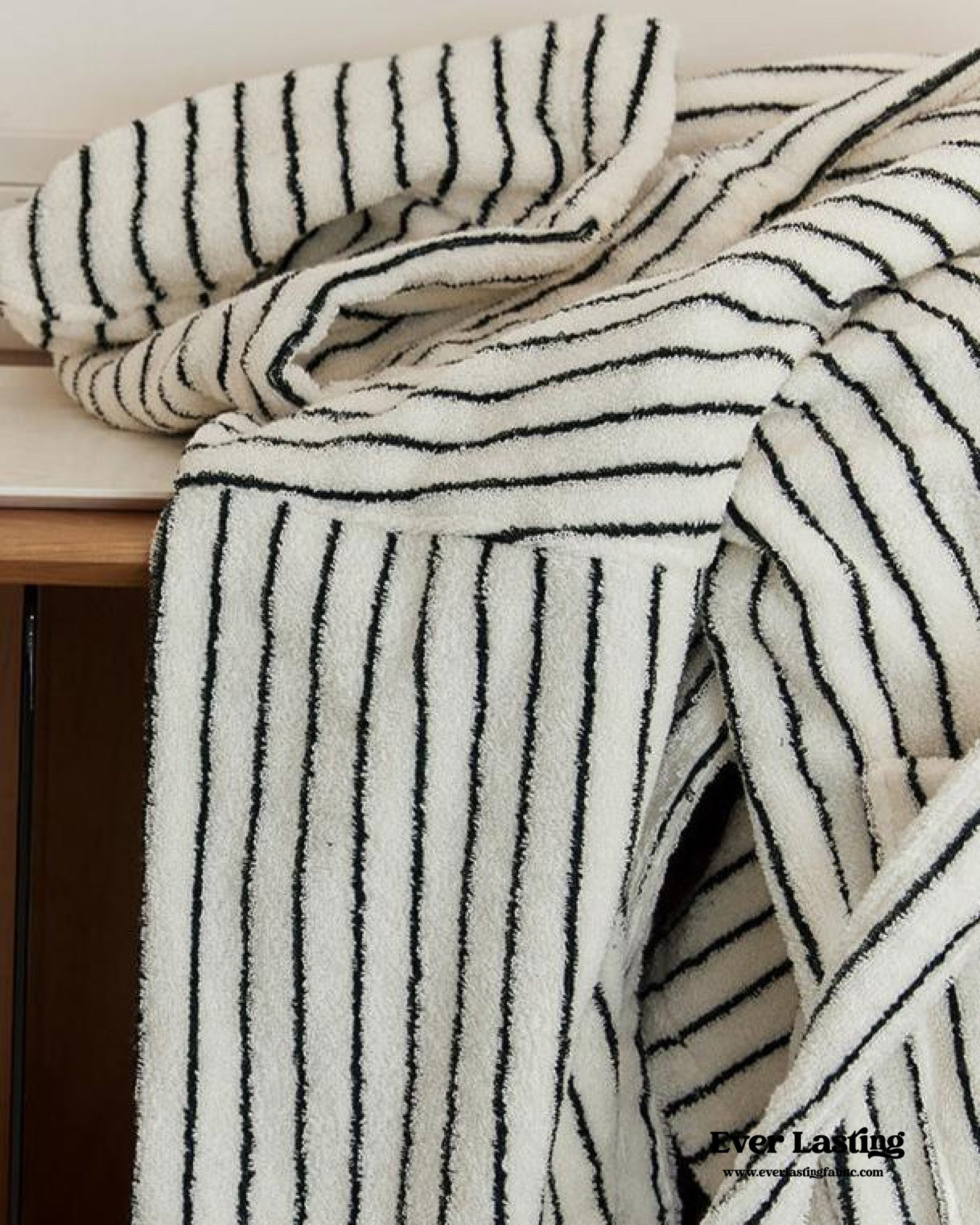 Wrap yourself in effortless comfort and style with Ever Lasting’s Minimalist Thin Striped Hooded Bathrobe. Crafted from soft, breathable cotton, this lightweight bathrobe offers the perfect balance of coziness and sophistication. The delicate thin stripe pattern adds a touch of timeless charm, while the relaxed hood provides extra warmth and comfort for those cozy mornings and self-care nights. Designed with a flattering waist tie for a customizable fit and spacious pockets for convenience, this robe is perfect for lounging, post-shower relaxation, or layering over your favorite sleepwear. Whether you're embracing a cute, minimalist, or coastal-inspired aesthetic, this bathrobe is the perfect blend of elegance, softness, and everyday luxury.