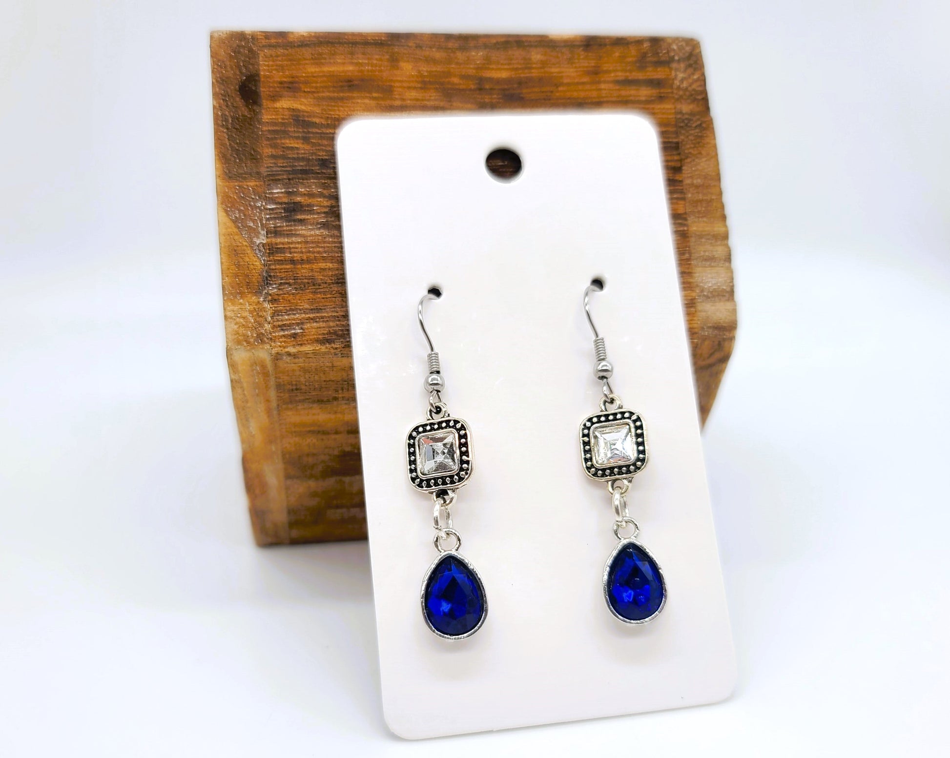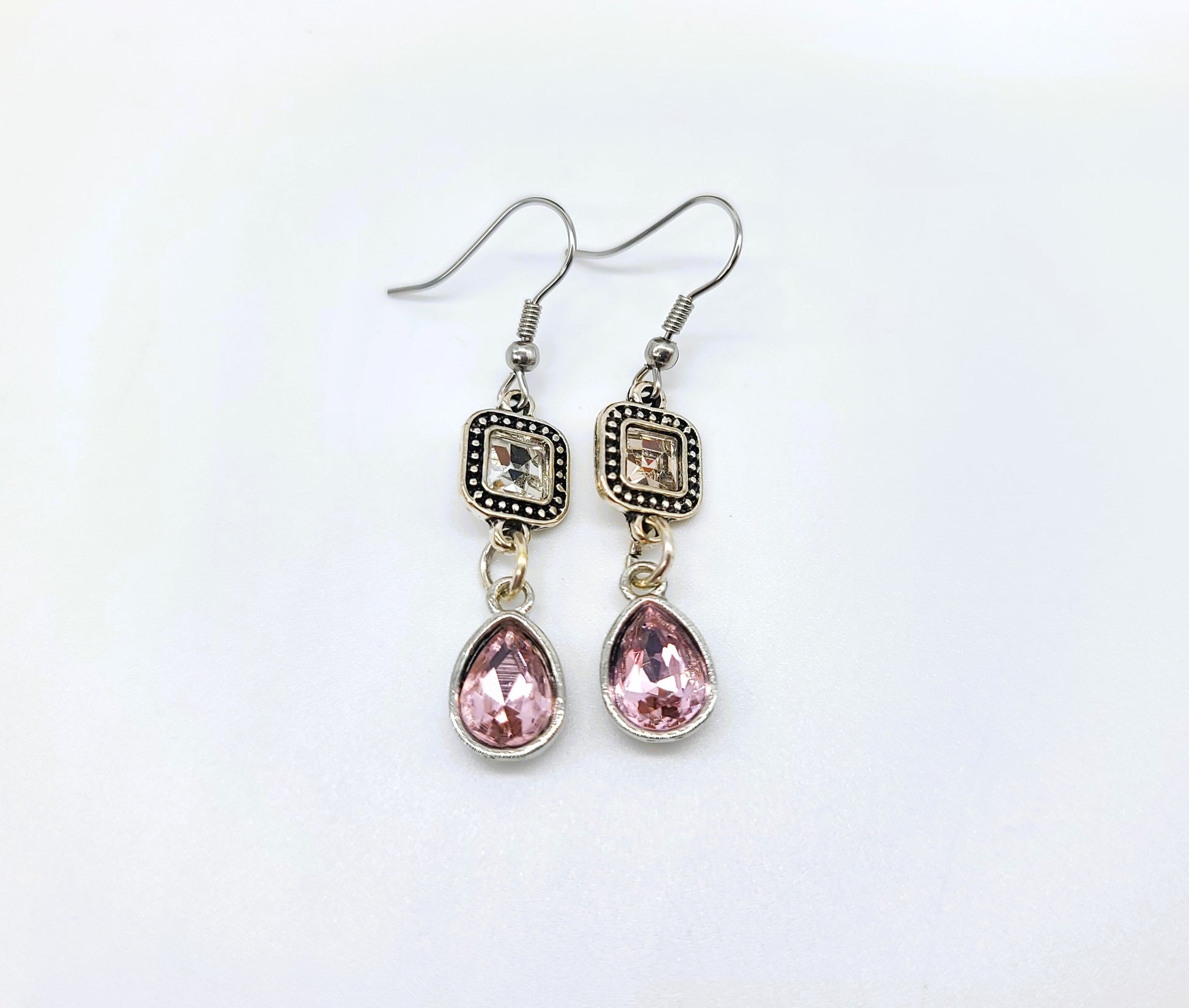 Handcrafted / Handmade Rhinestone Multifaceted Teardrop Dangle Earrings. Made with Hypoallergenic Stainless Steel Ear Hooks.