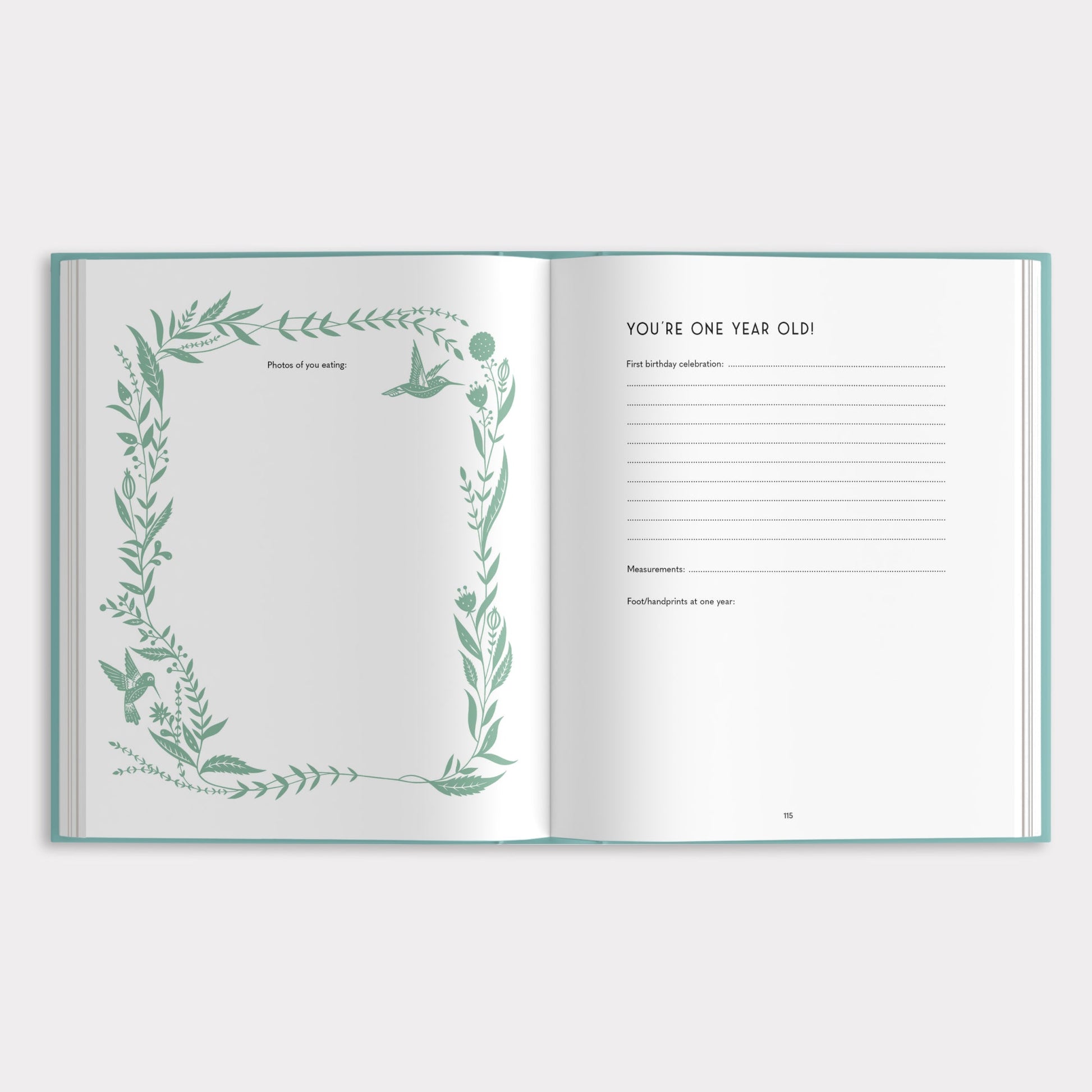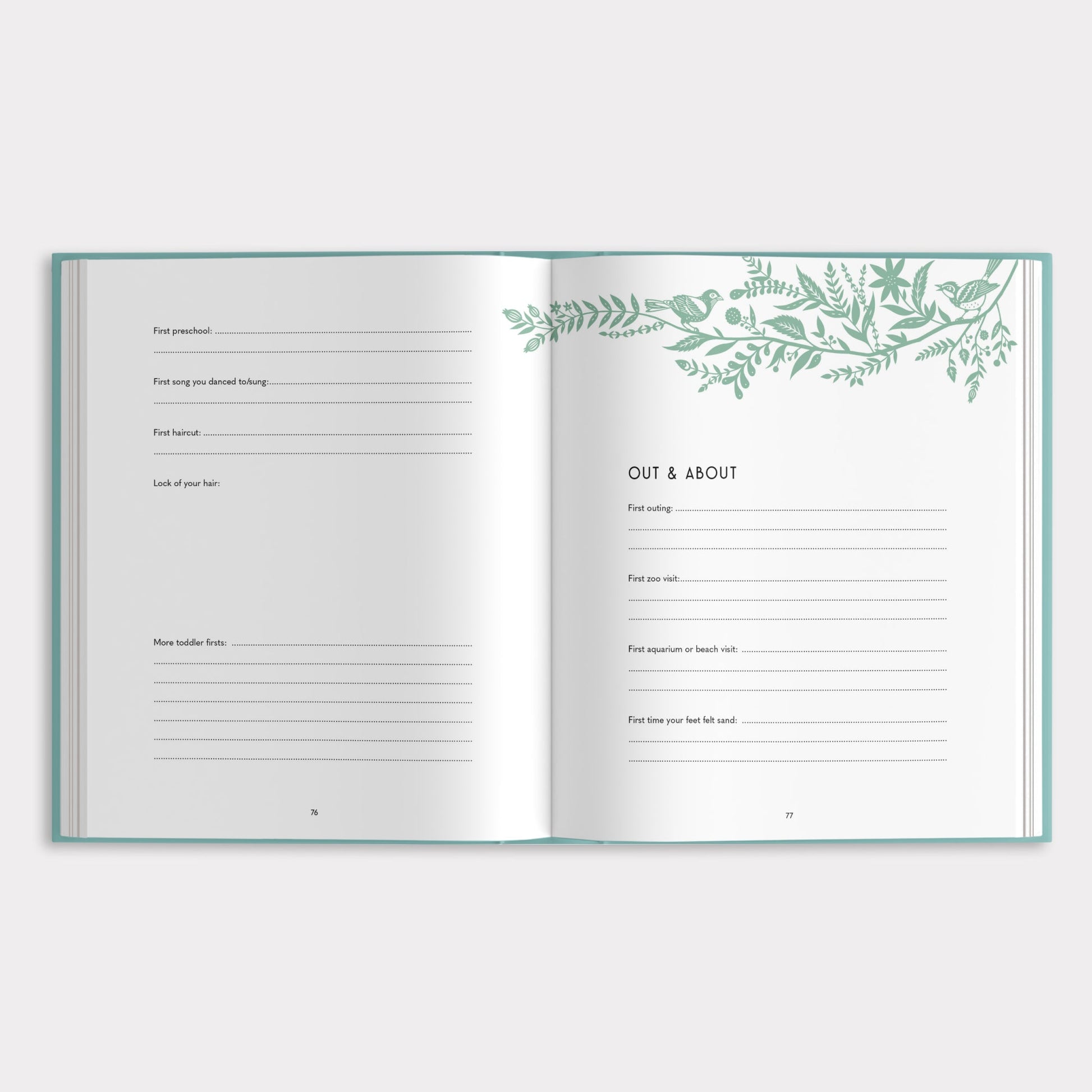 My Baby's Book focuses on baby’s delivery and first few years. Prompts include a mix of short-answer questions, lists, fill in the blanks, and places for photos to record pregnancy/anticipation of the birth, arrival, family info, observations about baby’s appearance and temperament, firsts, growth milestones, home, family friends, and baby playmates. When complete, you'll have a nuanced portrait of your baby's life through reflections, memories, history, and stories—a keepsake to be cherished throughout their life.