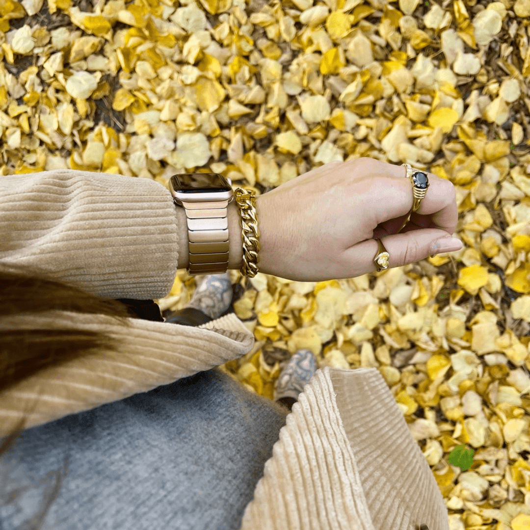 Above all, the Neos Stainless Band exemplifies quality. Additionally, made from durable 316L Stainless Steel, it promises longevity. The apple watch band offers a variety of hardware colors - Silver, Gold, Black, and the stunning Rose Gold. The elegant butterfly clasp not only ensures a secure fit but also adds to its premium feel. Plus, it's compatible with Apple Watch Series 4 - 10 & SE, fitting both 38/40/41/42mm & 44/45/46mm watch.