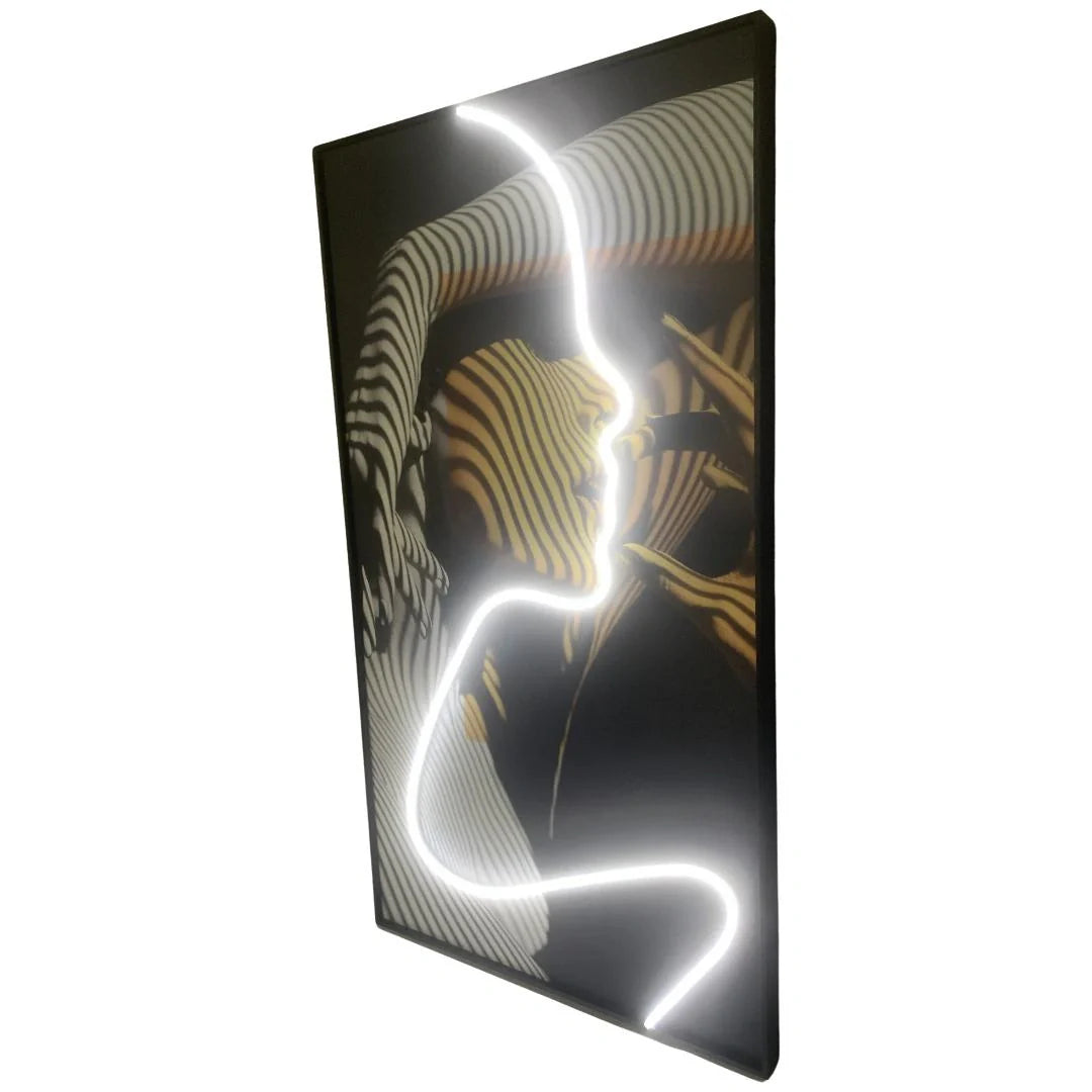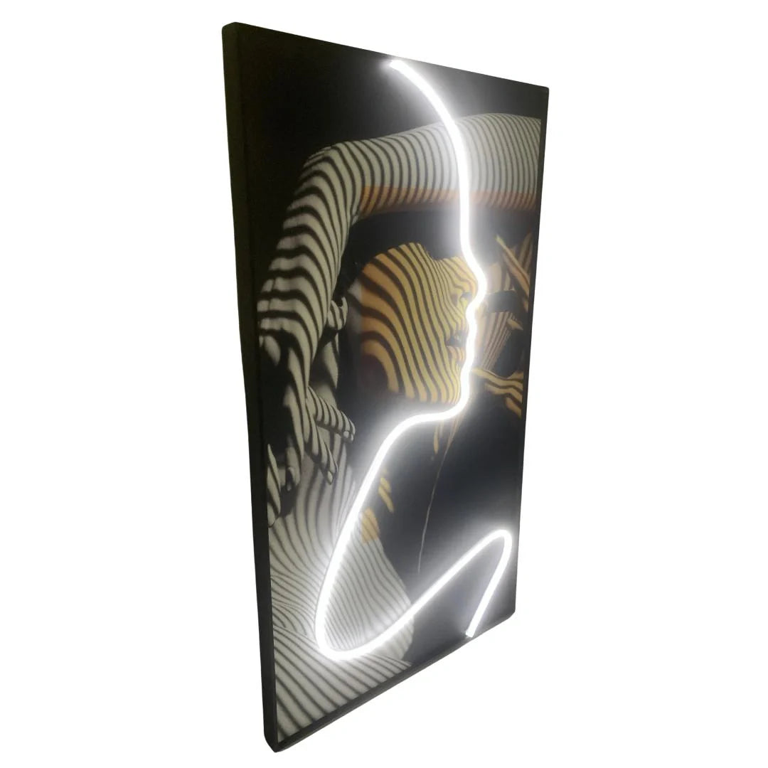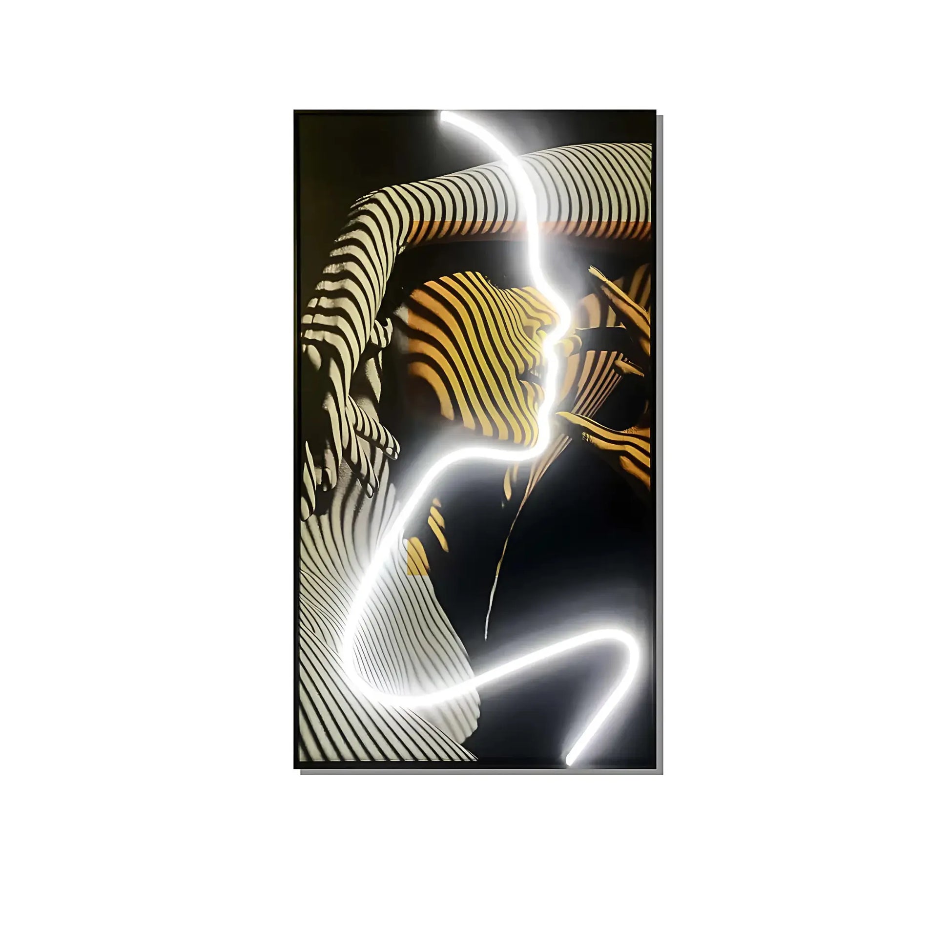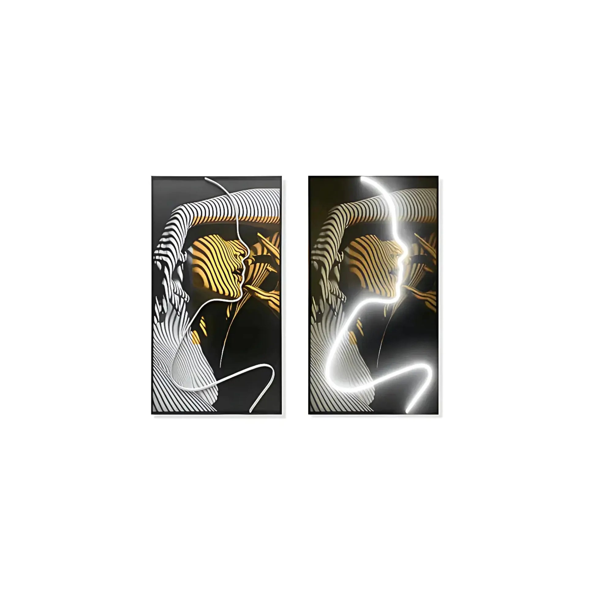 Introducing "Nighttime Noblesse: LED Wall Art" - a captivating wall print featuring an elegant lady shrouded in shadow, exuding an aura of mystery and sophistication. With an LED light tracing the outline of her face, this piece transforms into a mesmerizing spectacle when the room is dark, casting an enchanting glow that highlights her features. Whether lounging in a pagoda or amidst a night-time scene, the elegance of the lady captured in this artwork adds a touch of refinement to any space. Elevate your home decor with the allure of "Nighttime Noblesse" and let its captivating presence inspire intrigue and admiration in your surroundings.