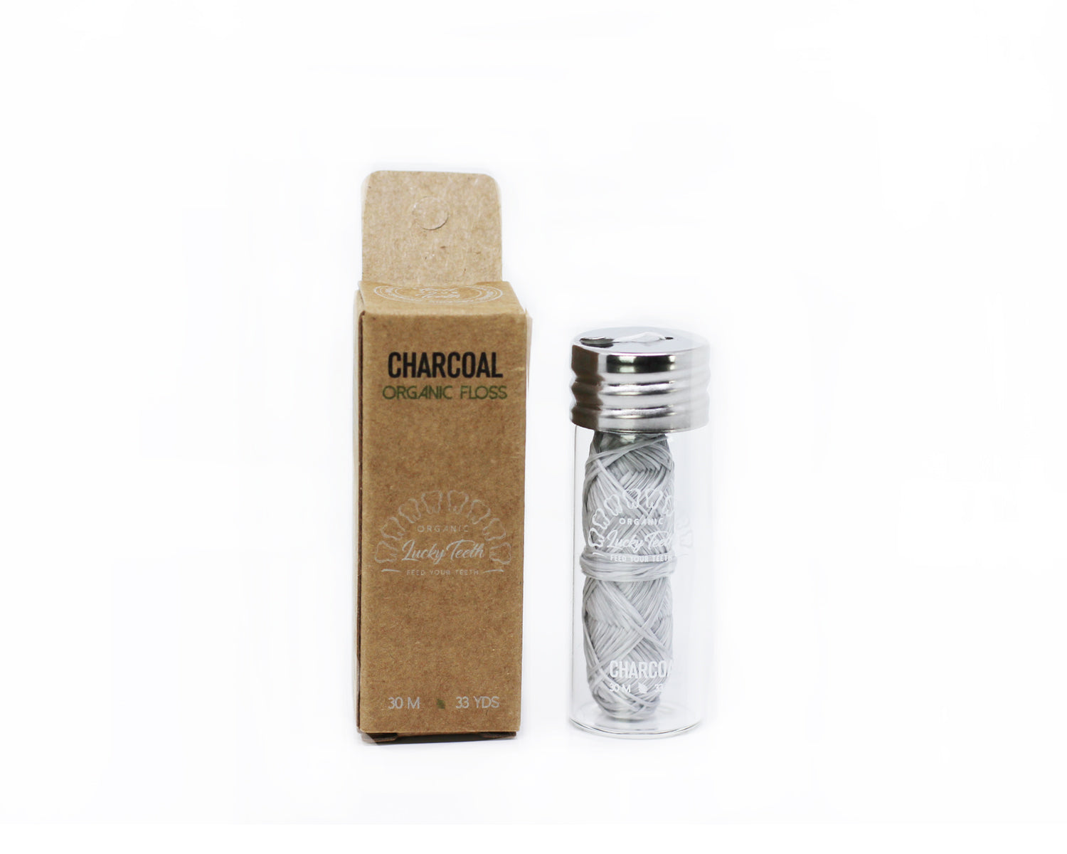 Organic PLA Activated Charcoal Dental Floss - Activated Charcoal Floss in Glass Jar 30m / 33 yds