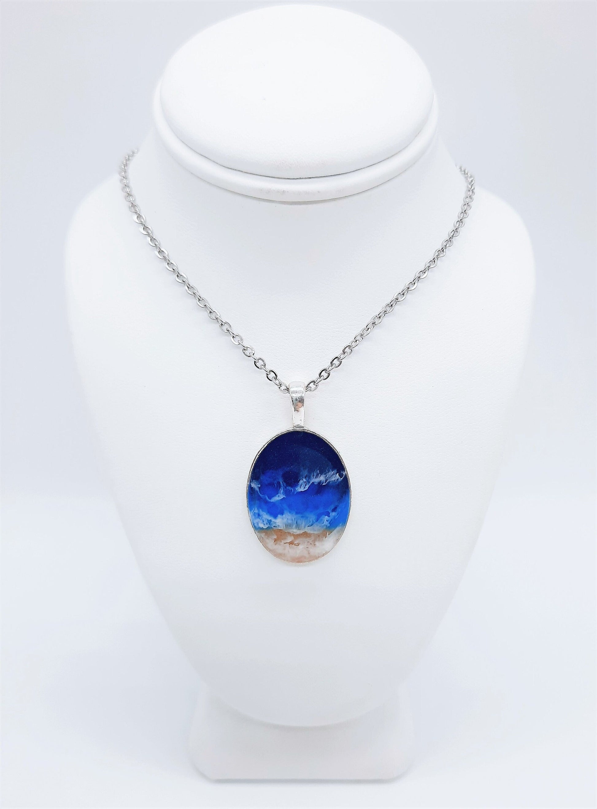 Oval Resin Seascape Necklace & Earring Set