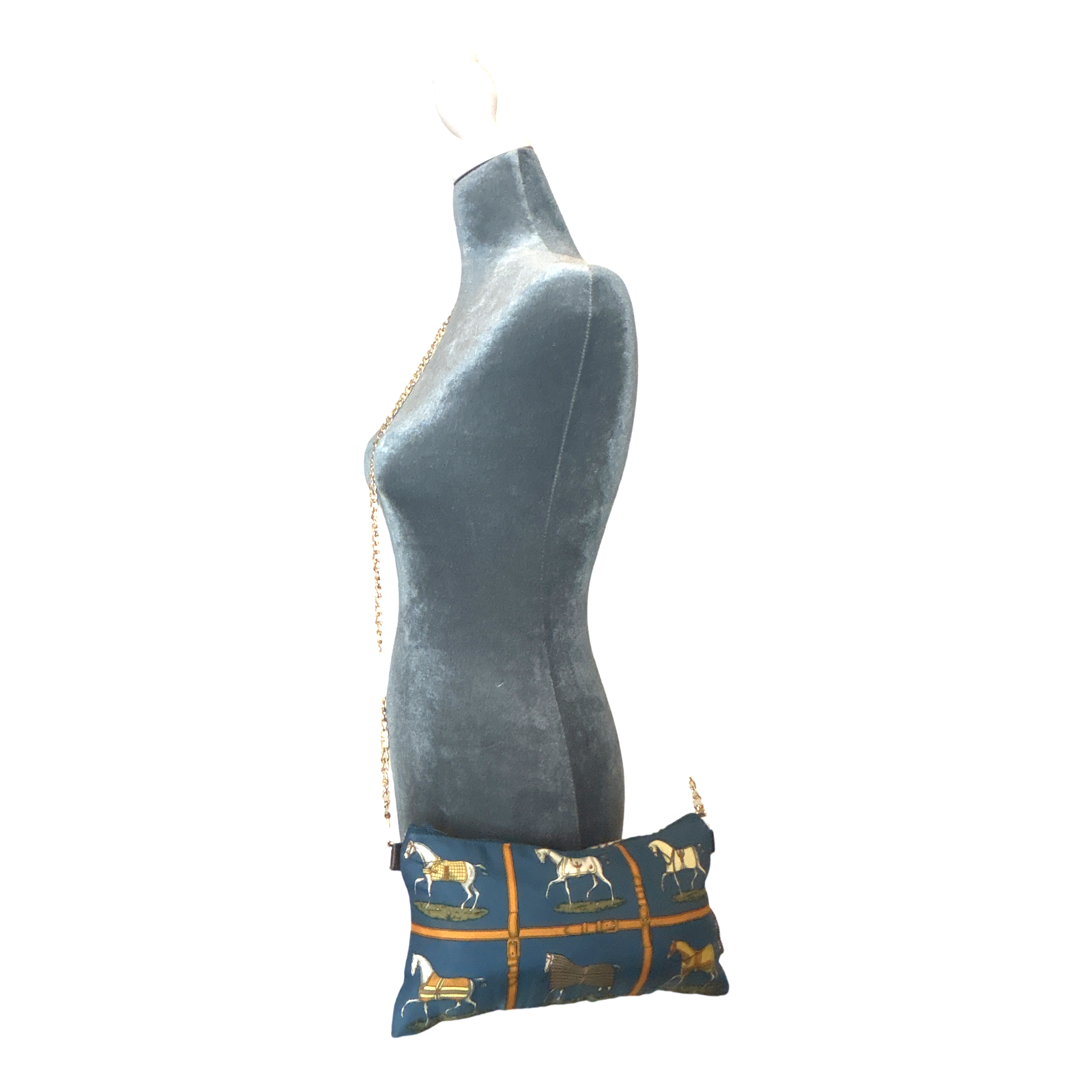Petites Chevaux Teal Vintage Scarf Crossbody Bag