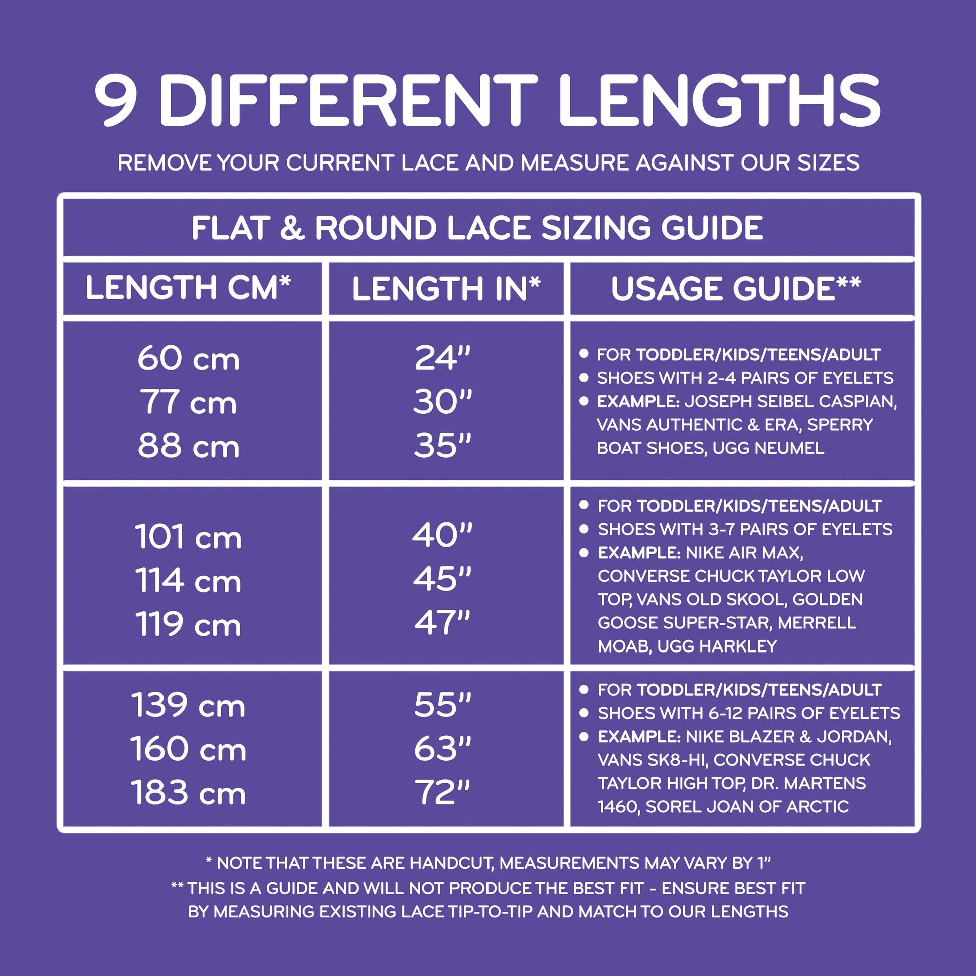 Flat laces measure 1/4 inch wide.