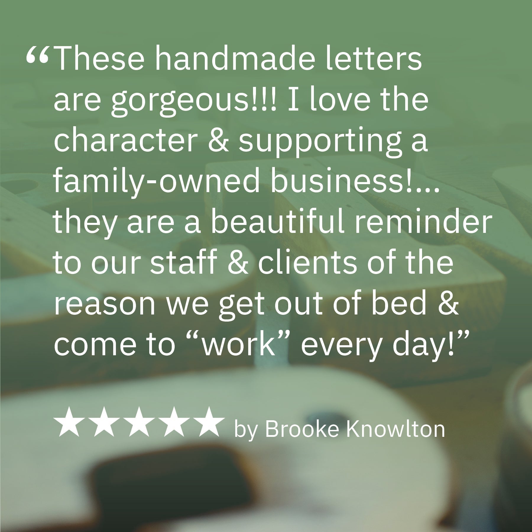 Each letter is carefully cut and hand-finished in our Texas workshop using rustic, reclaimed wood. No two are exactly alike—each piece carries unique character, grain, and texture, making your message truly one of a kind.