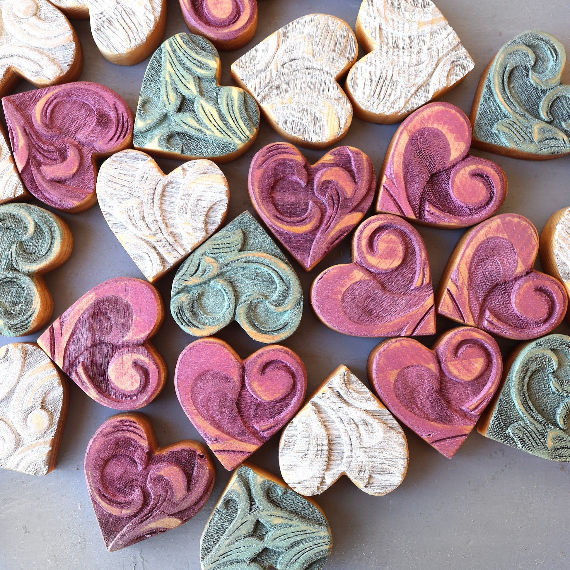 Our beautiful handmade wooden hearts are thoughtfully crafted to bring warmth, charm, and a whole lotta love to your life. These adorable hearts are more than just decor—they are heartfelt expressions of love.