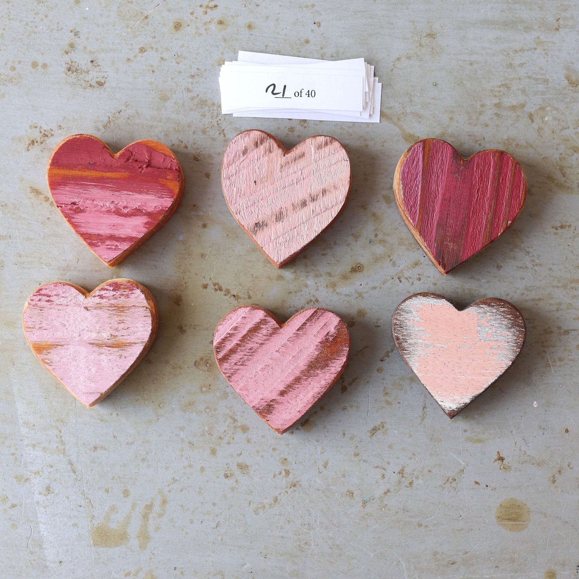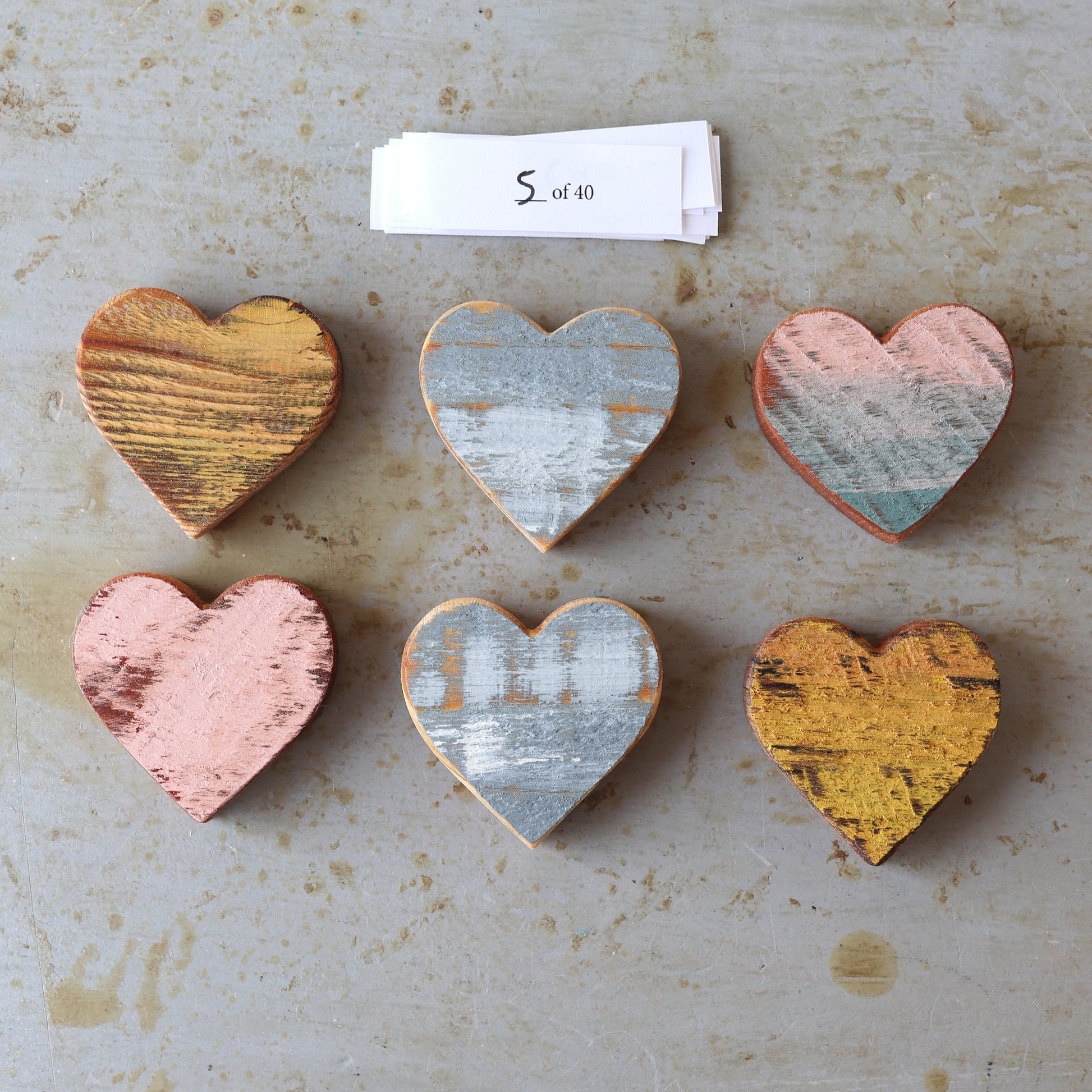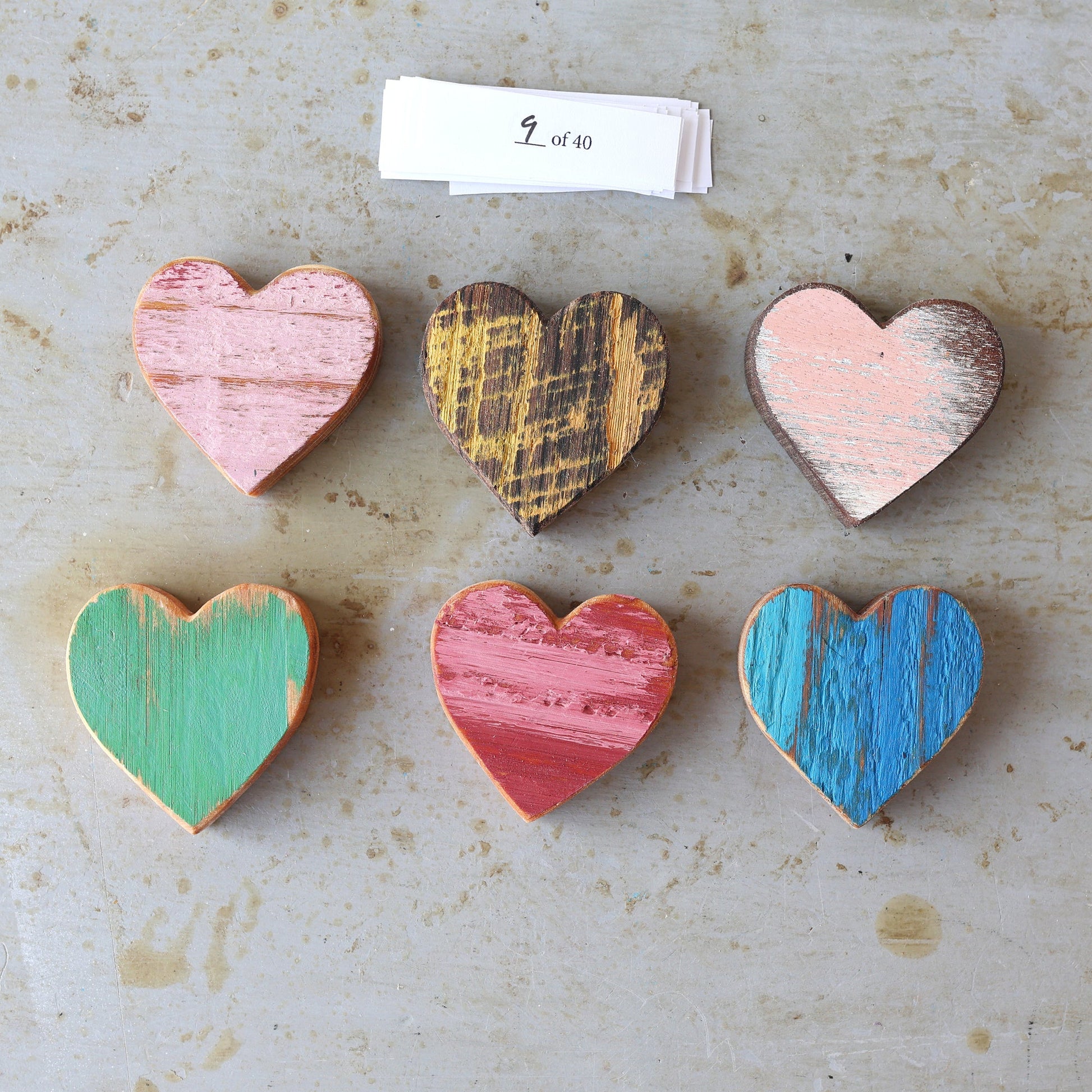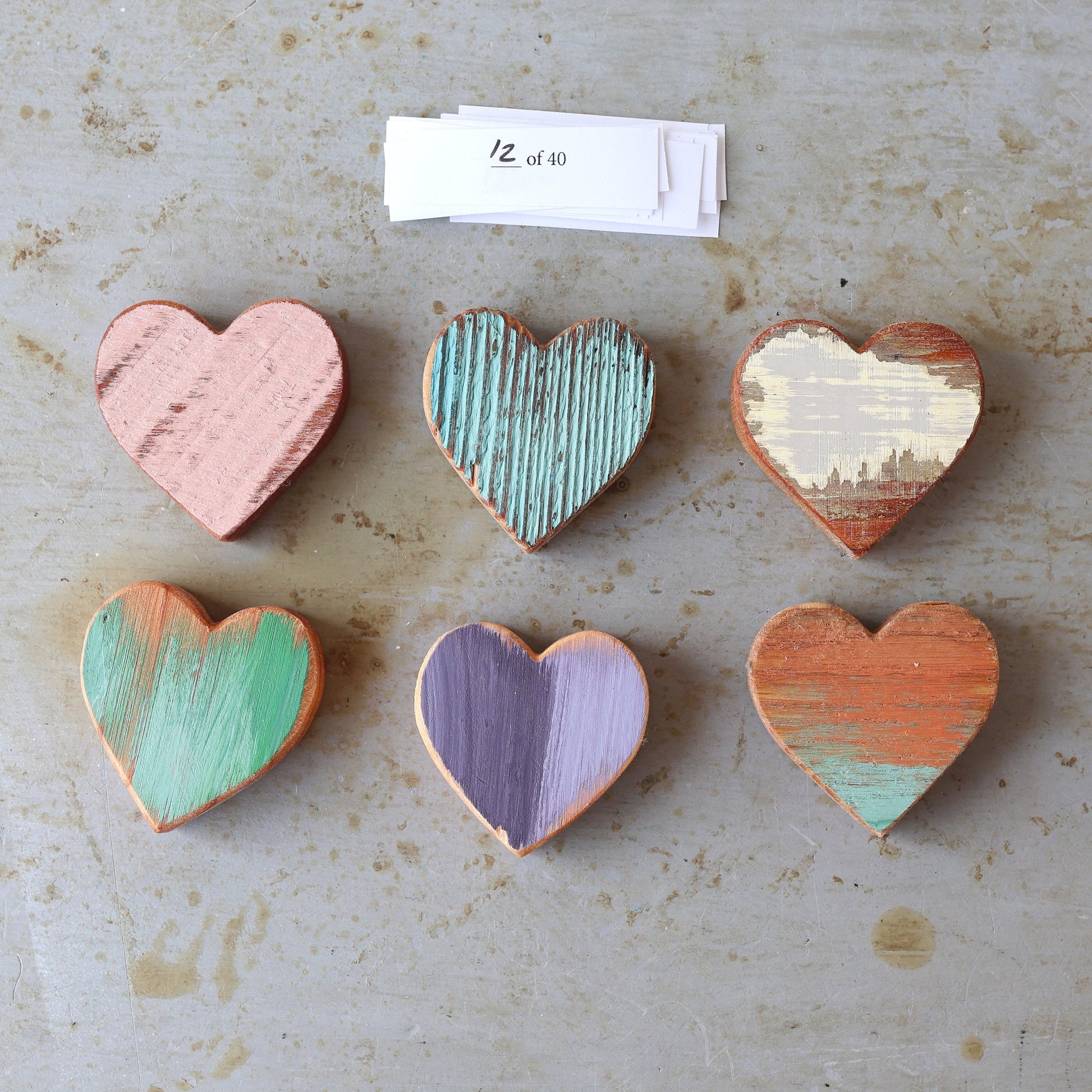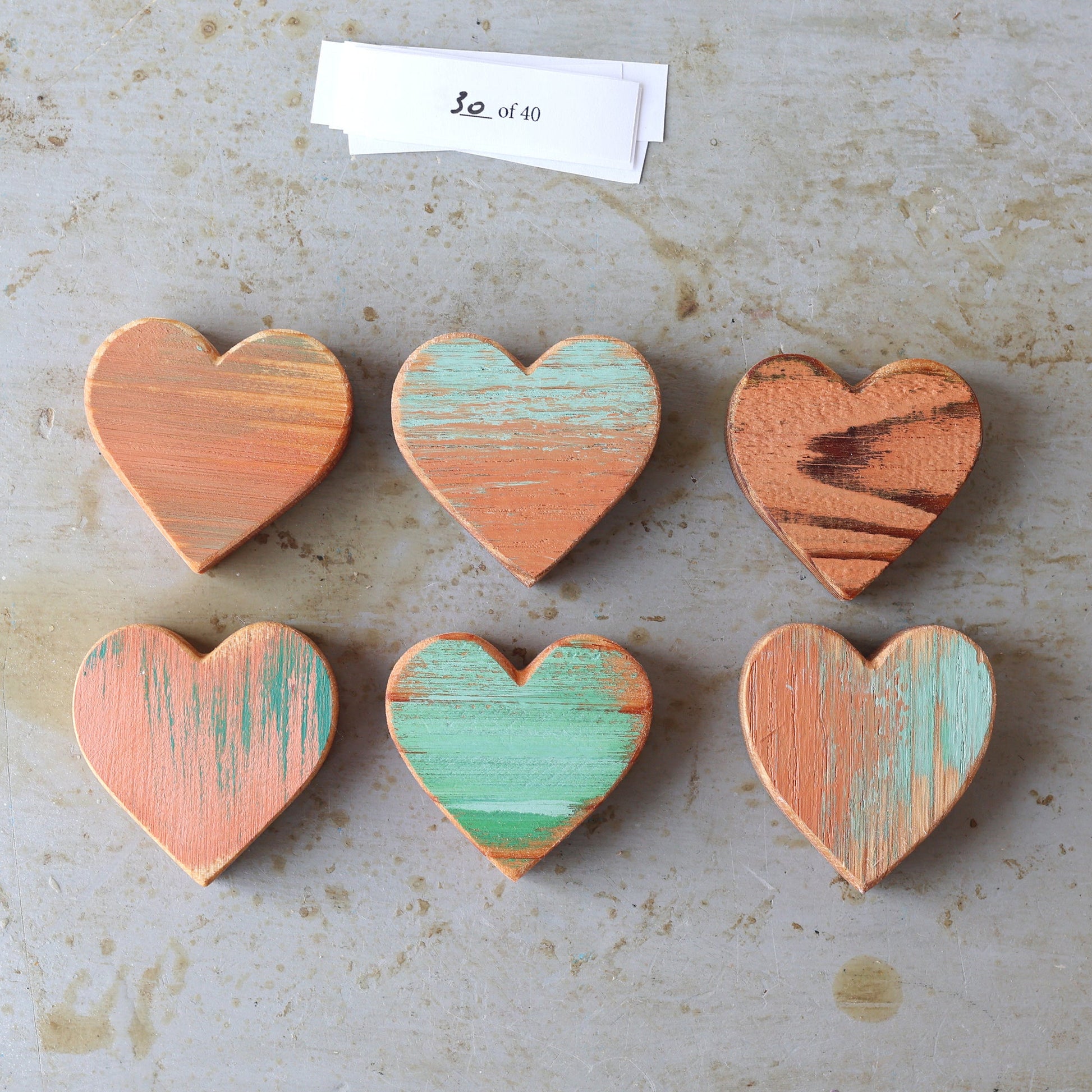 You'll get a half-dozen of these beautifully rugged handpainted wooden hearts. Each set is unique and marked as one of 40 sets of 6 hearts.