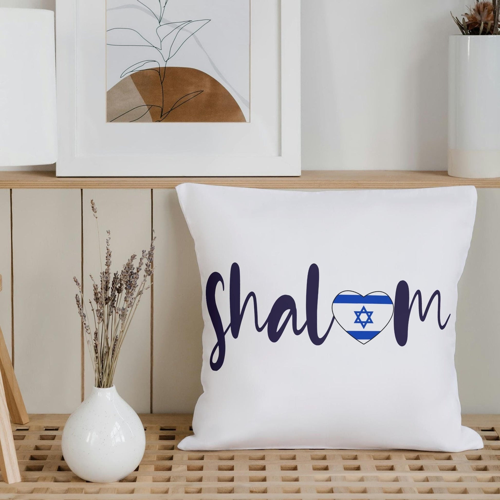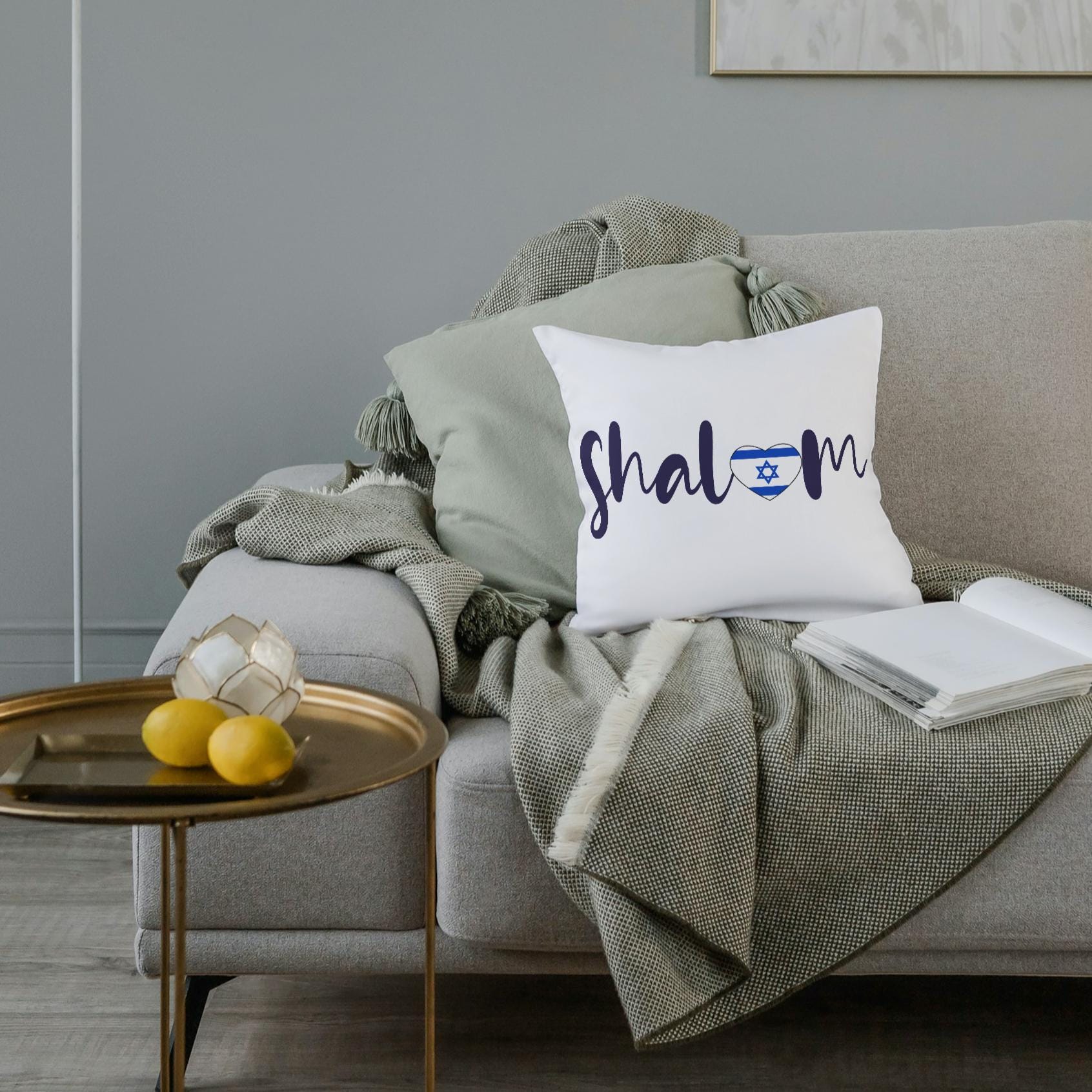 Minimalist and good vibes in a white linen throw pillow for your favorite peace loving Jew's first apartment.