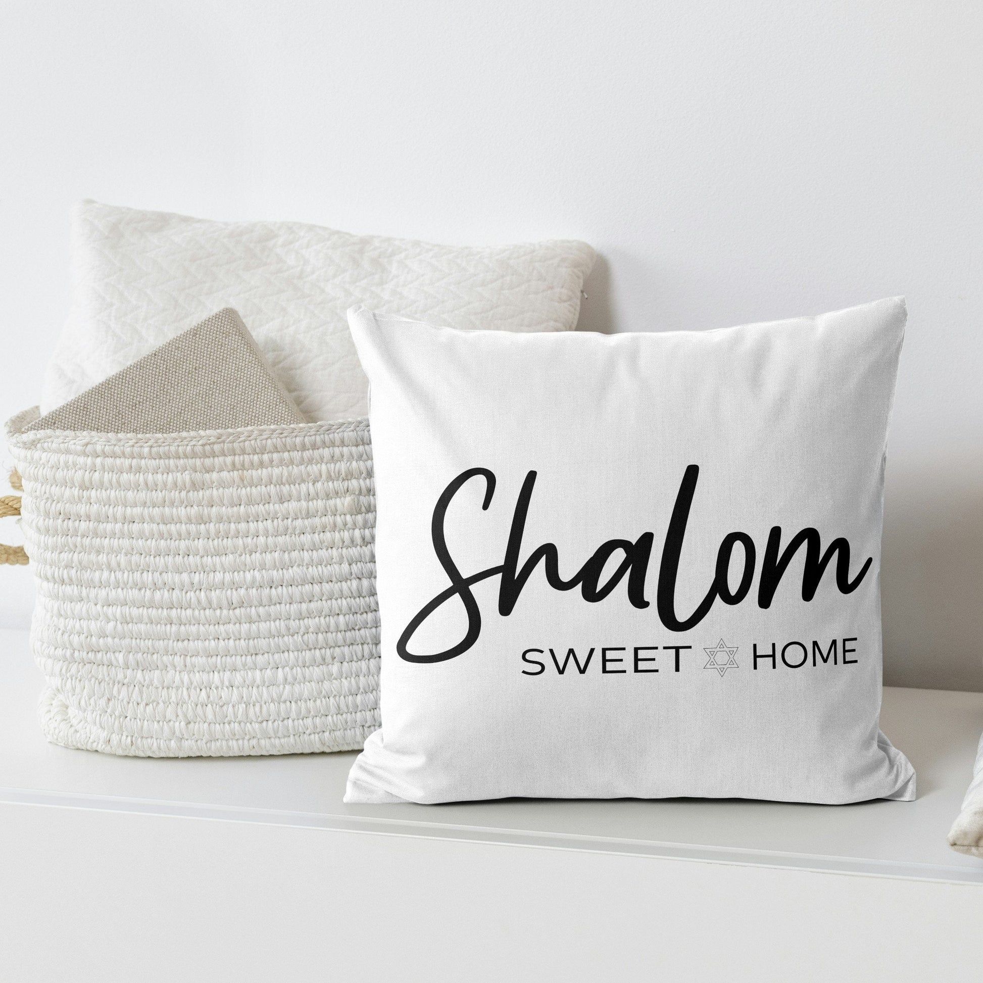 Minimalist and good vibes in a white linen throw pillow for shalom in your home this season.
