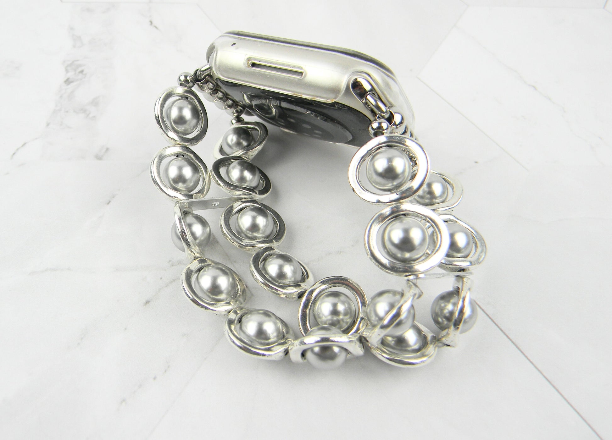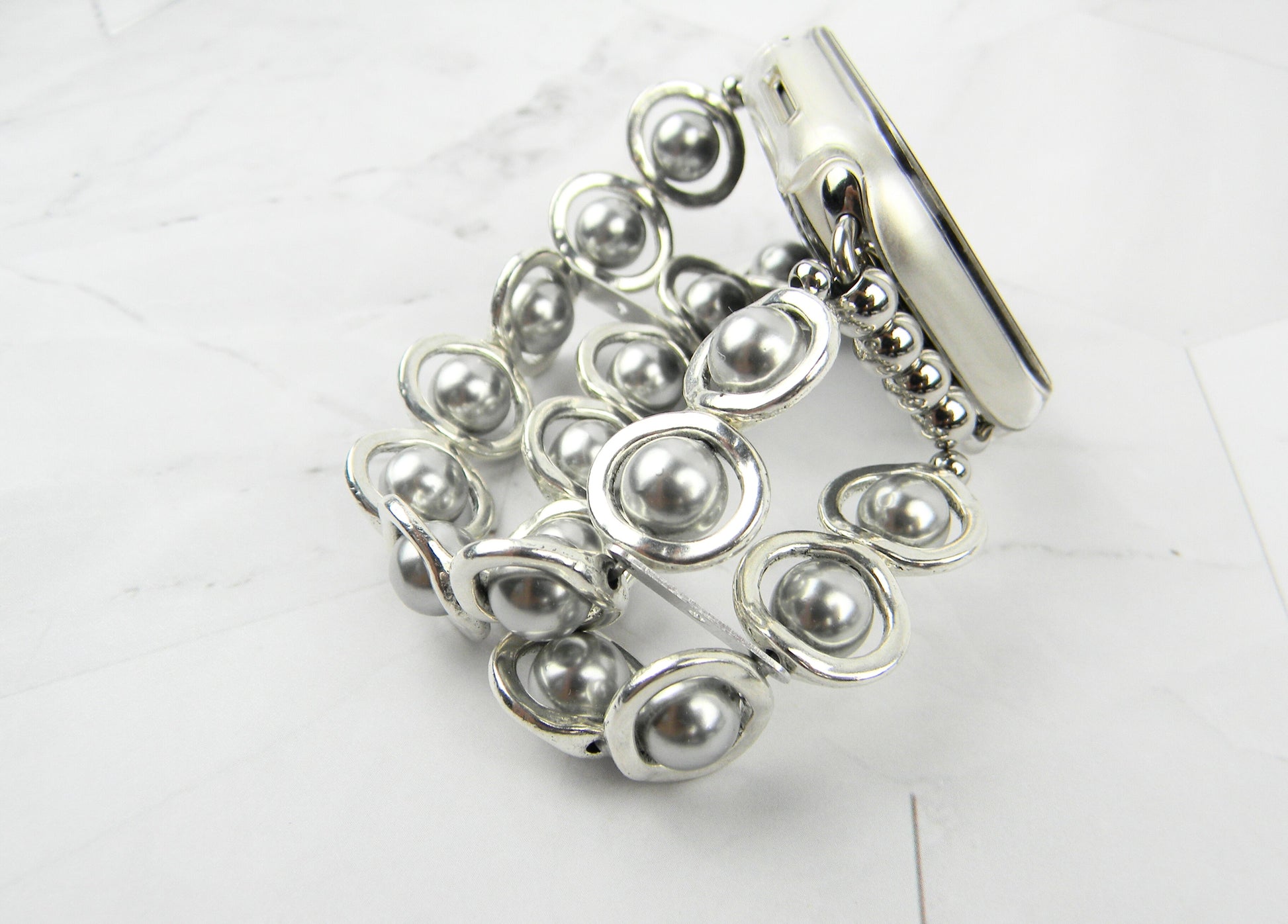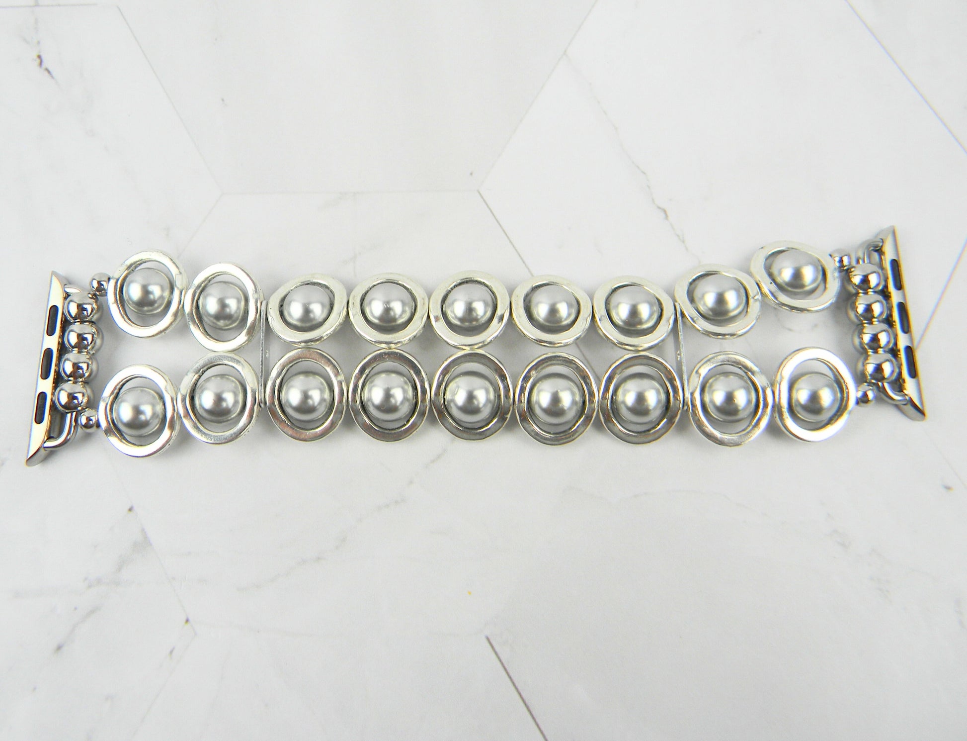 Watch Bands for Apple Watch - Silver Ovals and Silver Glass Beads