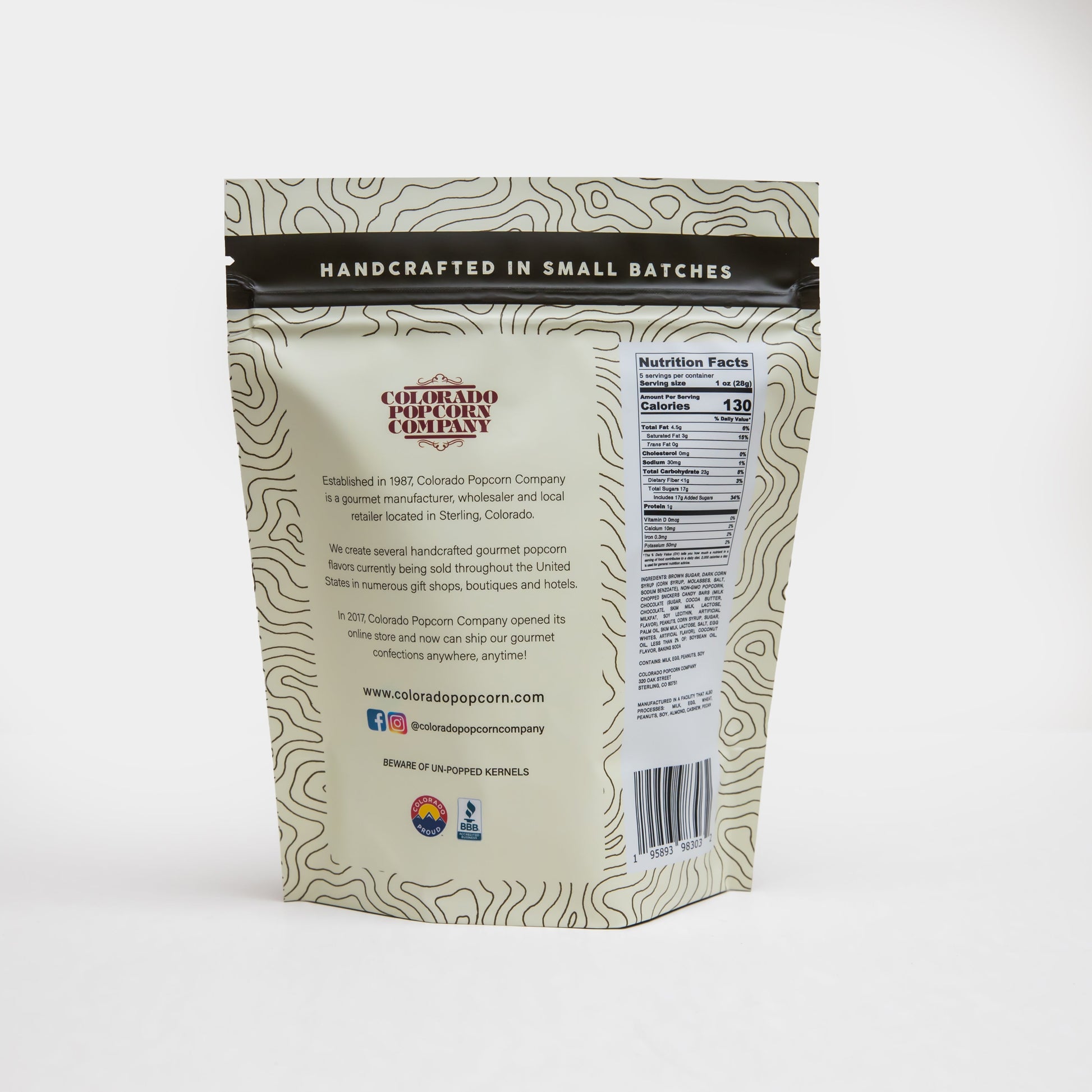 A bag of our Snickers Caramel popcorn. Our classic caramel popcorn with pieces of Snickers candy bars throughout. A sweet tooth's paradise!