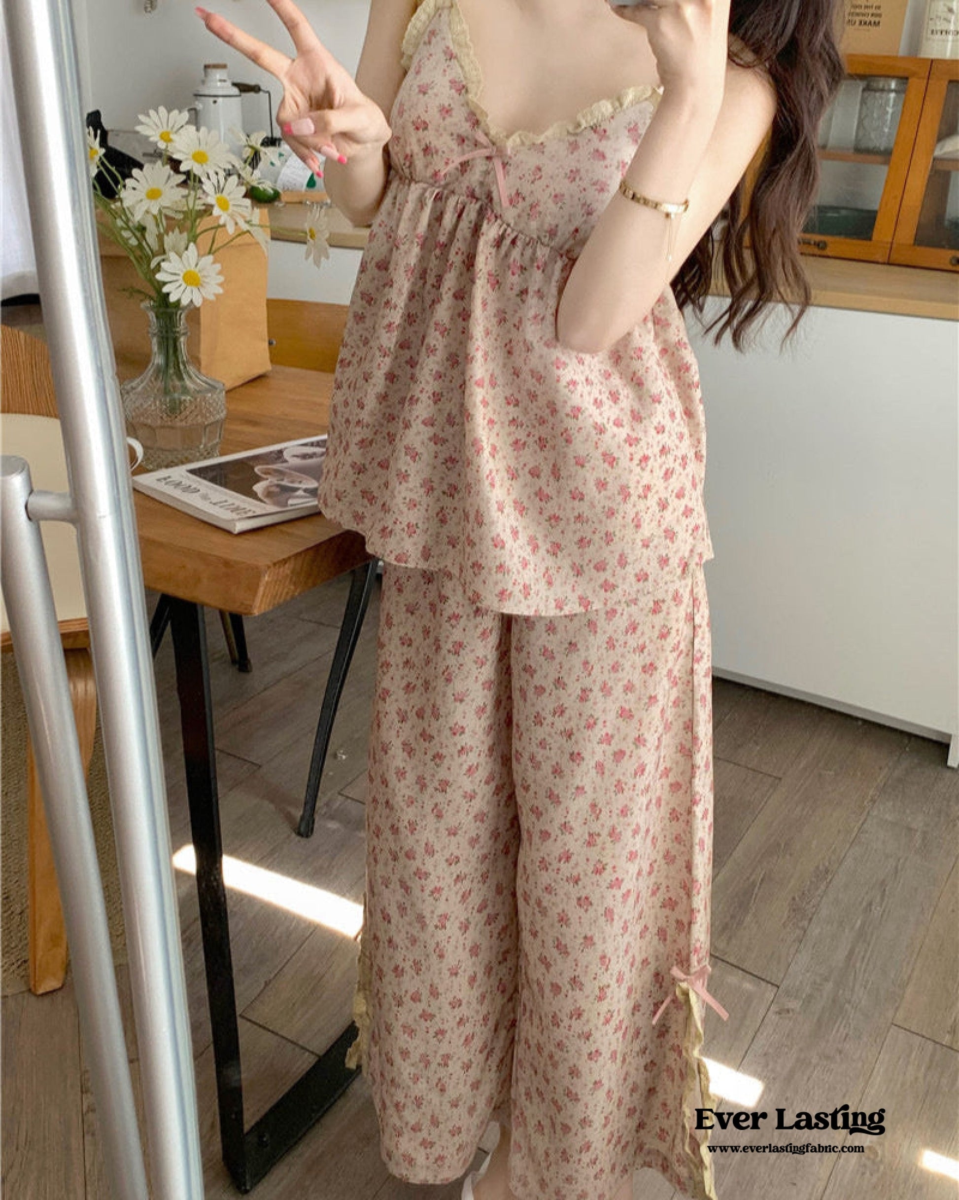 Upgrade your loungewear with the Sophie Pastoral Floral Pajama Set from Ever Lasting. Crafted from soft and breathable polyester, this set guarantees comfort whether you're lounging at home or settling in for a peaceful night's sleep. Featuring a charming floral design that embodies the cottagecore vibe, the set includes a dainty camisole with adjustable straps for a tailored fit and matching shorts with an elastic waistband for extra comfort. Its lightweight fabric makes it perfect for warm evenings or lazy mornings, blending cozy practicality with a touch of elegance.