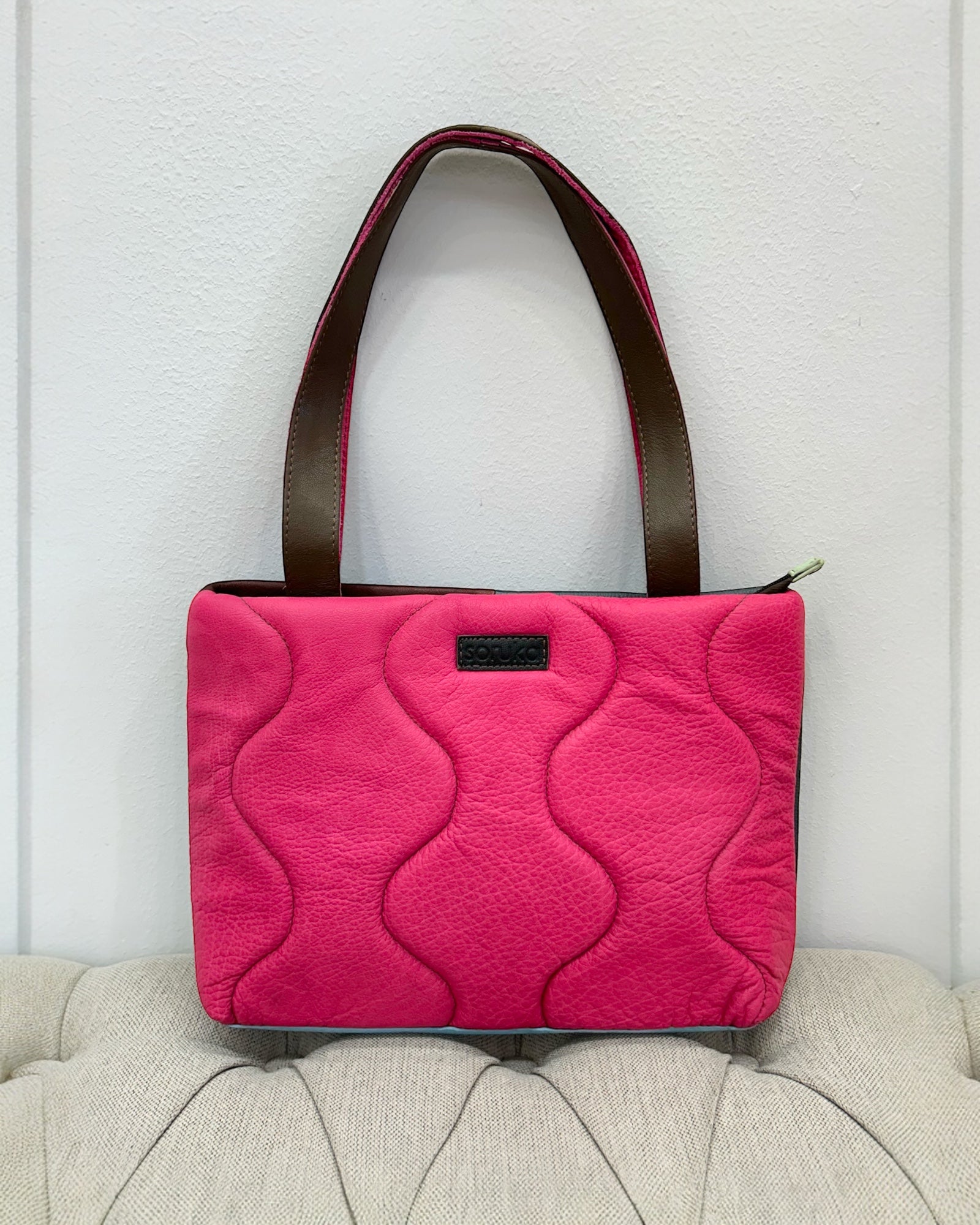 **Please note: Since all Soruka bags are made of recycled leather scraps, some color variations are possible in the folds and inside the lining of the bags and some imperfections or variations in color and texture may occur due to the recycled nature of the leather.