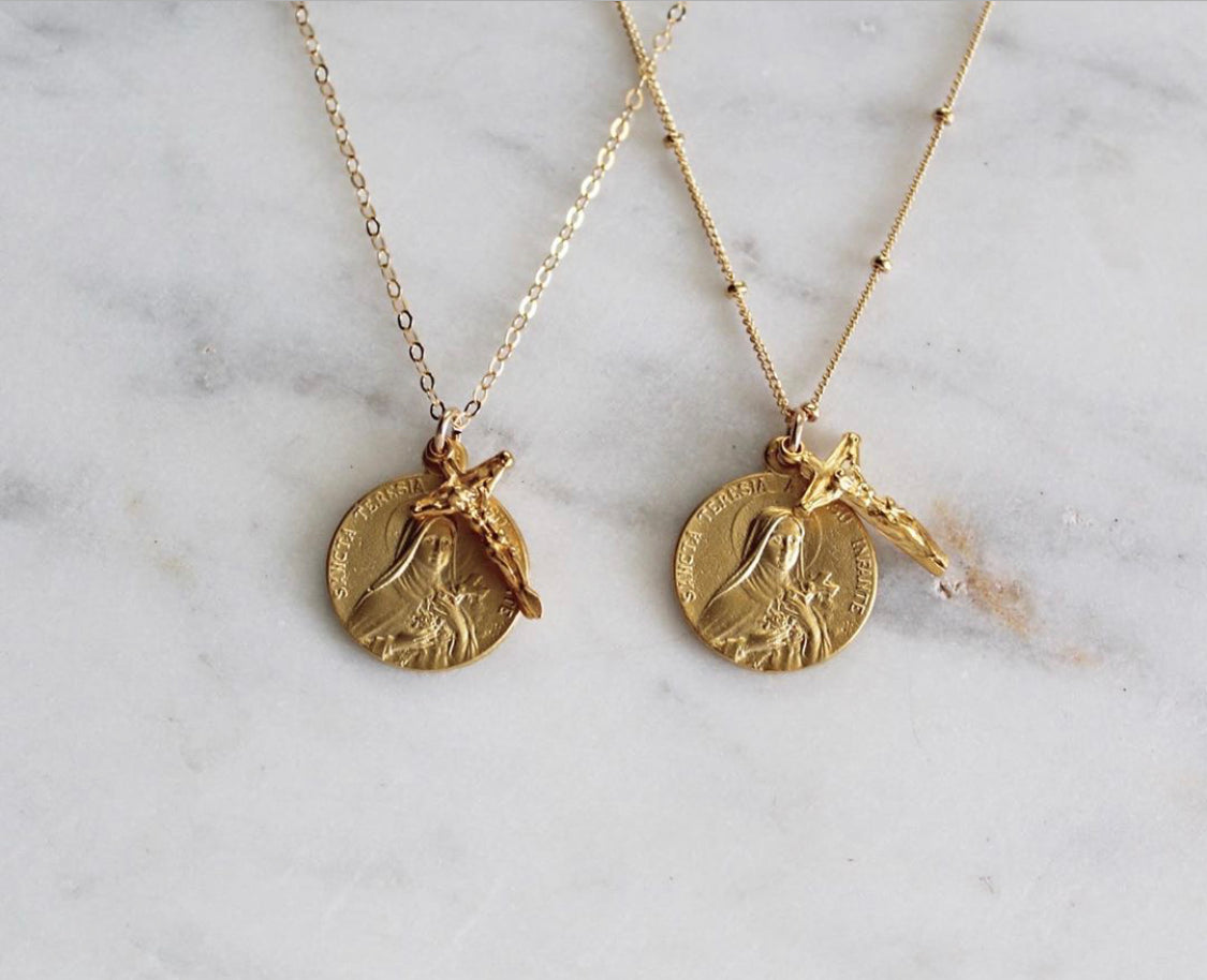 The St. Therese of Lisieux medal with Crucifix, a beautiful tribute to Saint Therese and her powerful intercession. Saint Therese, also known as "The Little Flower," is celebrated for her unwavering faith and her ability to perform miracles through the power of prayer.