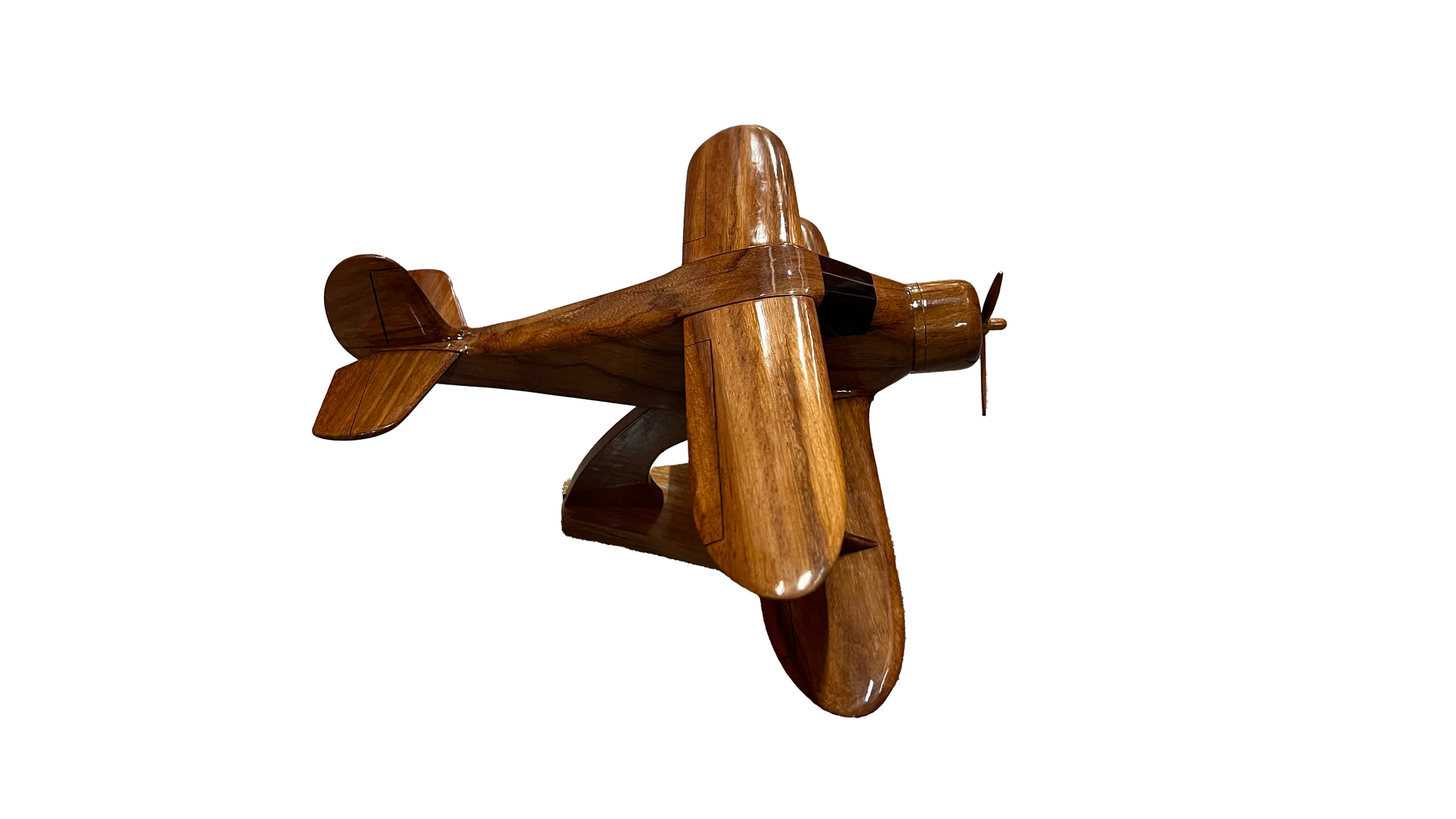 This Beechcraft Model 17 Staggerwing is beautifully handcrafted out of reclaimed Mahogany Wood. Each piece is crafted with intense detail and finished with three coats of polyurethane coating that gives it a high gloss finish. This fine work of art takes approximately 18 hours of labor to create. If you are a collector or simply want a fine art piece this mahogany model is sure to enhance your home or office.
