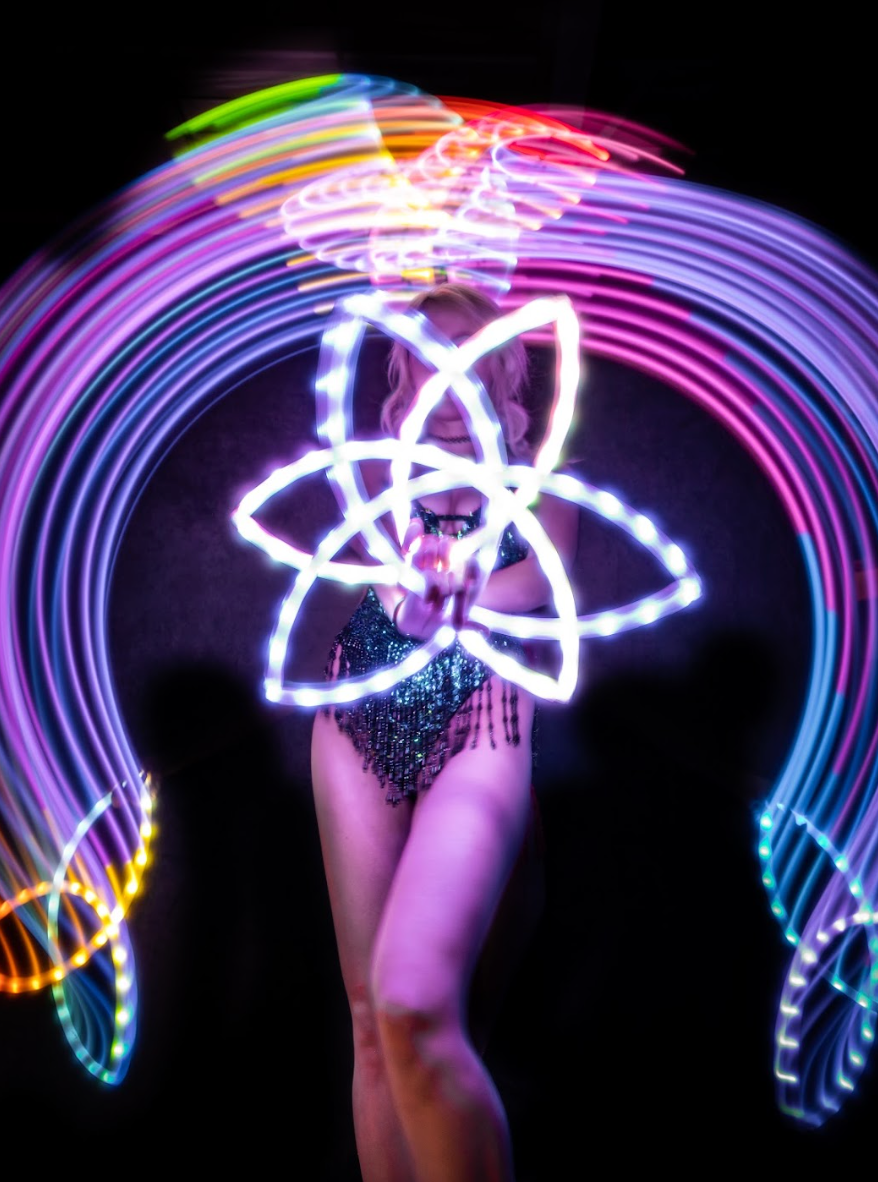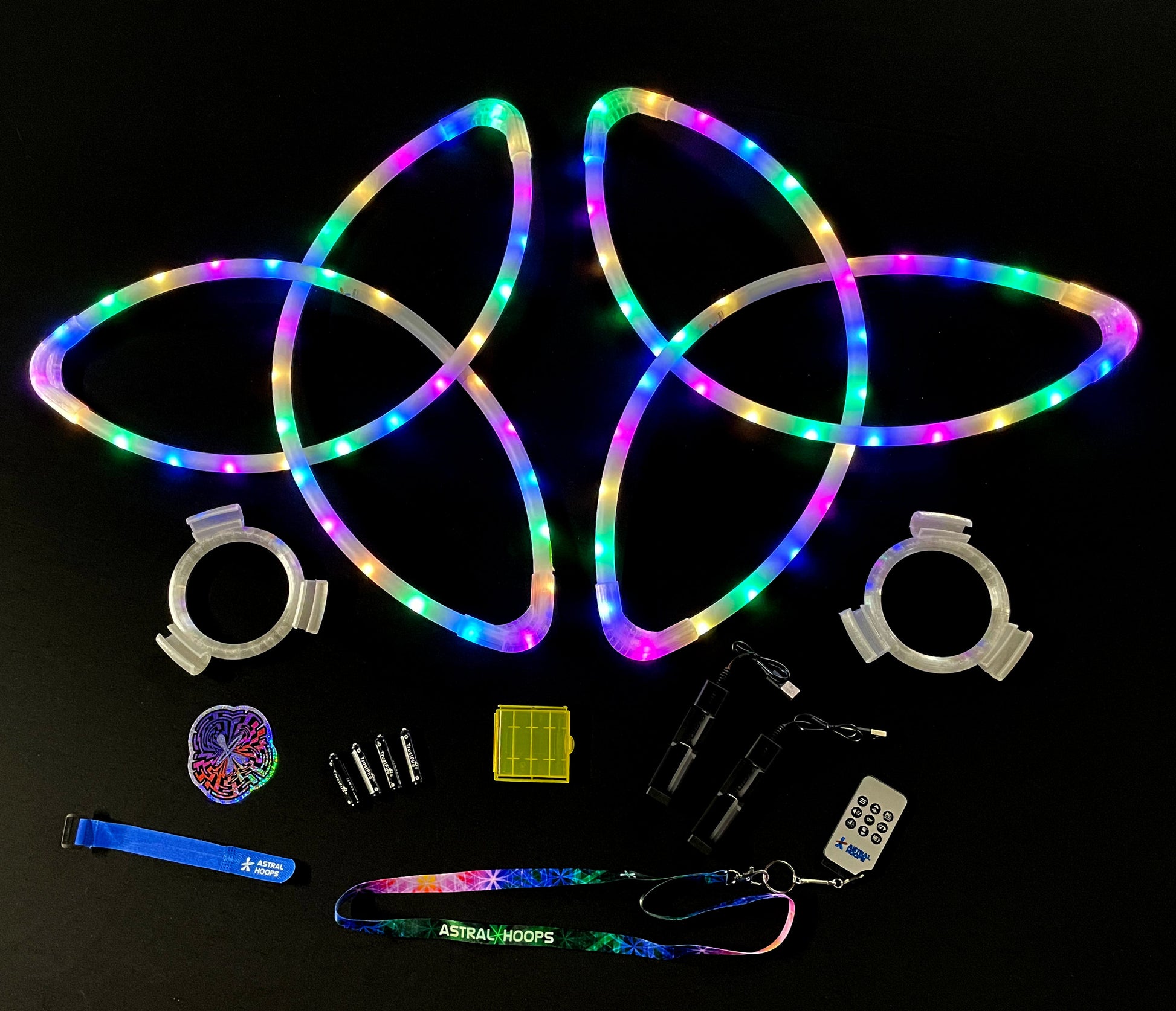 The LEDs shine a full 360 degrees around, fully lighting up tubing.  Because of this, fewer LEDs are needed to create stunning effects.  That also means the batteries last longer on a charge, making this a perfect prop for long flow jams, performances, and festival use!