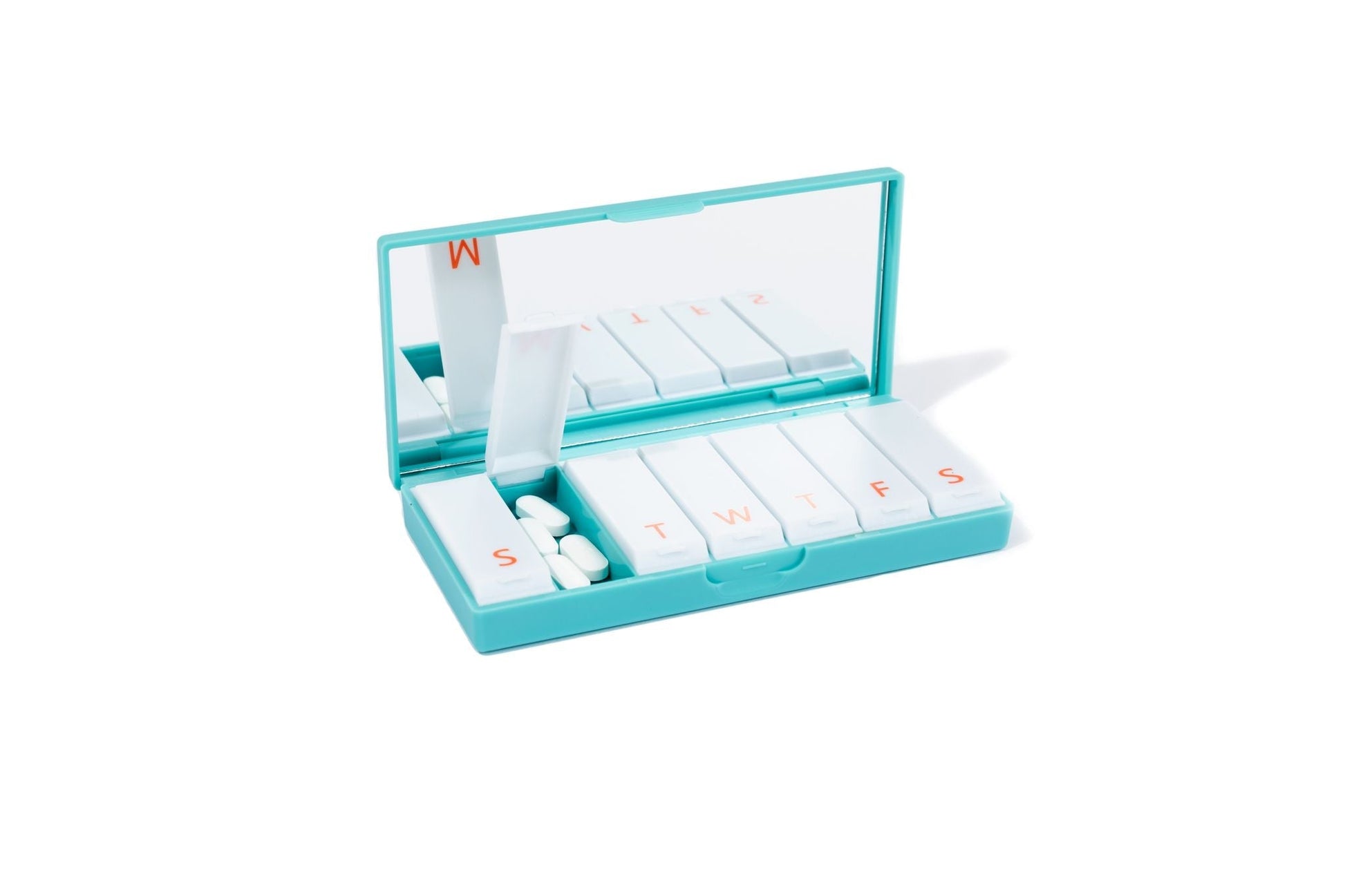 Minimalist and modern, our pill boxes feature a clean design that includes a soft-touch matte finish outside and a mirror on the inside.