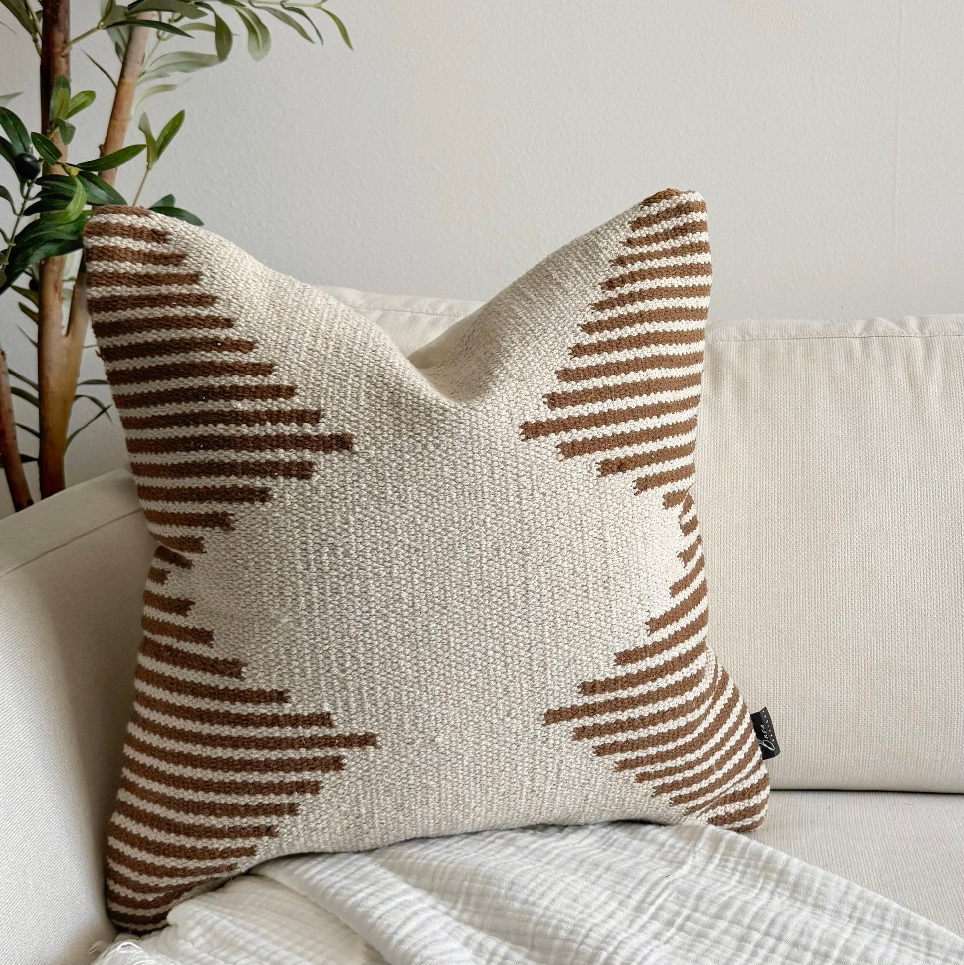 Elevate your home décor with this handcrafted 20" pillow cover, designed to blend modern boho style with timeless quality. Featuring neutral brown and beige stripes, this versatile cover brings texture and warmth to any space, whether styled on a sofa, bed, or accent chair. Each piece is carefully made in India by skilled artisans, ensuring exceptional craftsmanship and attention to detail.