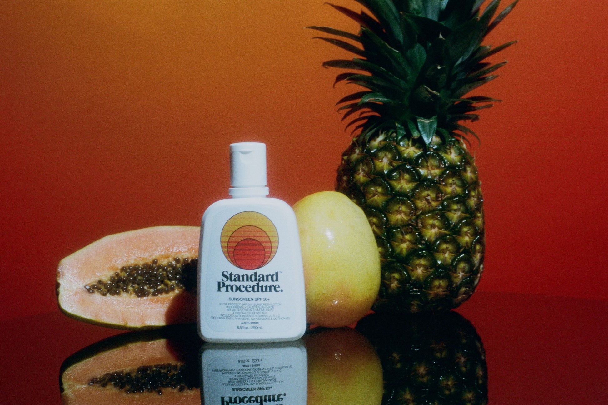 SPF 50+ Sunscreen 250ml – High-performance, 4-hour water resistant, broad spectrum UVA/UVB protection.