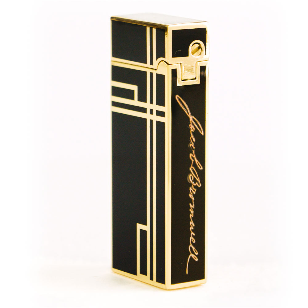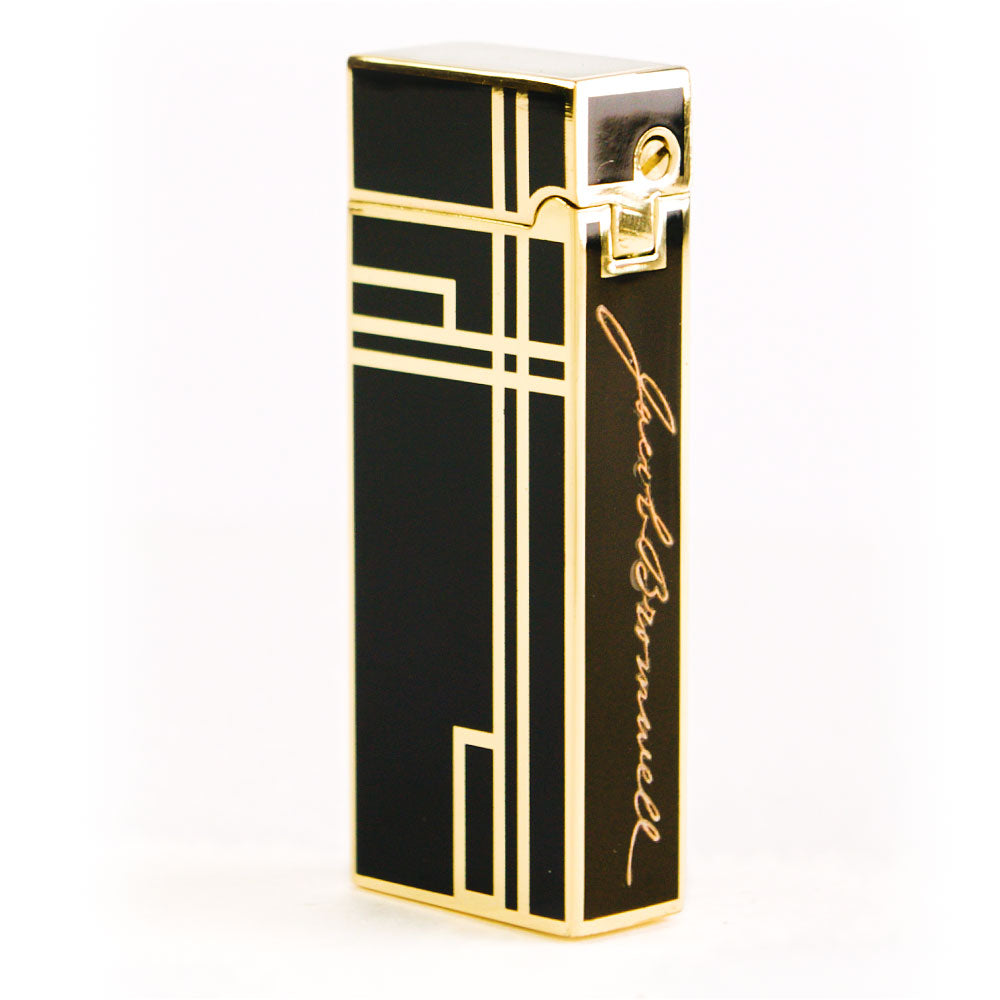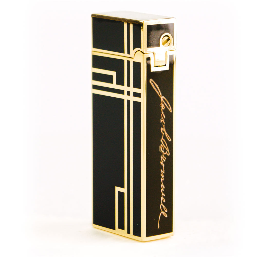 The Prestige is our debut luxury lighter—hand-finished to perfection, unapologetically refined, and crafted to last for generations. Each lighter is coated in deep, piano-black lacquer, applied painstakingly in multiple layers to achieve a mirror-smooth surface, then detailed with brilliant golden accents worthy of Old Hollywood. In the hand, it feels weighty and confident—its Art Deco profile recalling an era when design and engineering walked arm in arm. The precision-machined rolling strike produces a flawless ignition every time, while a warm, windproof yellow flame glows at your command, adjustable for every occasion. Bearing the engraved Jacob Bromwell® marquee and presented in a distinguished gift box, The Prestige is more than a lighter. It’s a statement. A future heirloom. A spark of American heritage carried in your pocket.