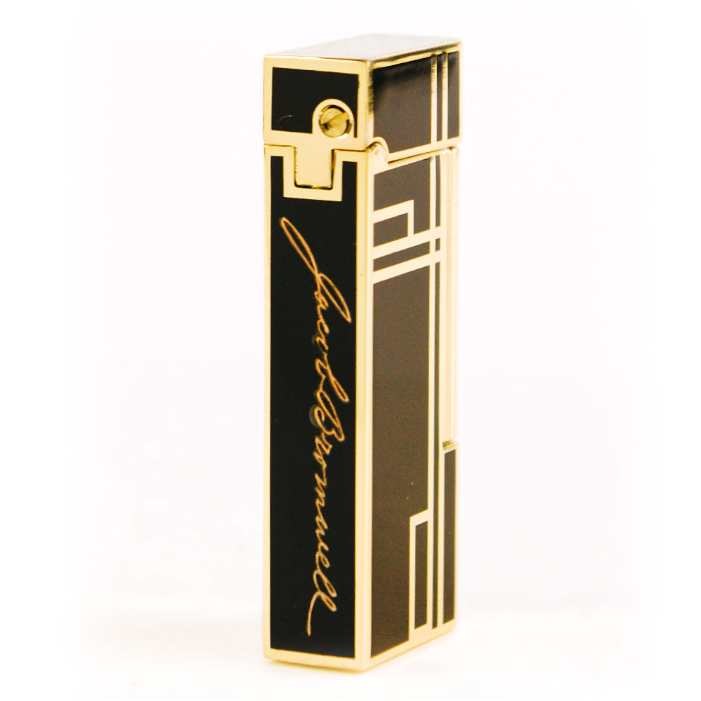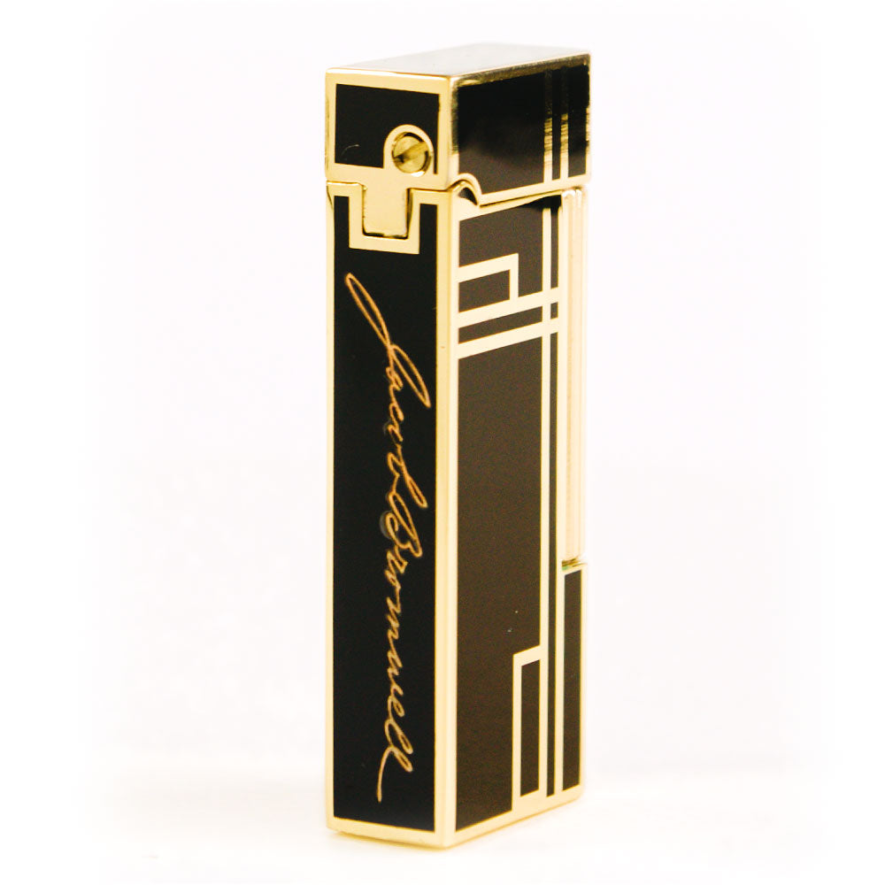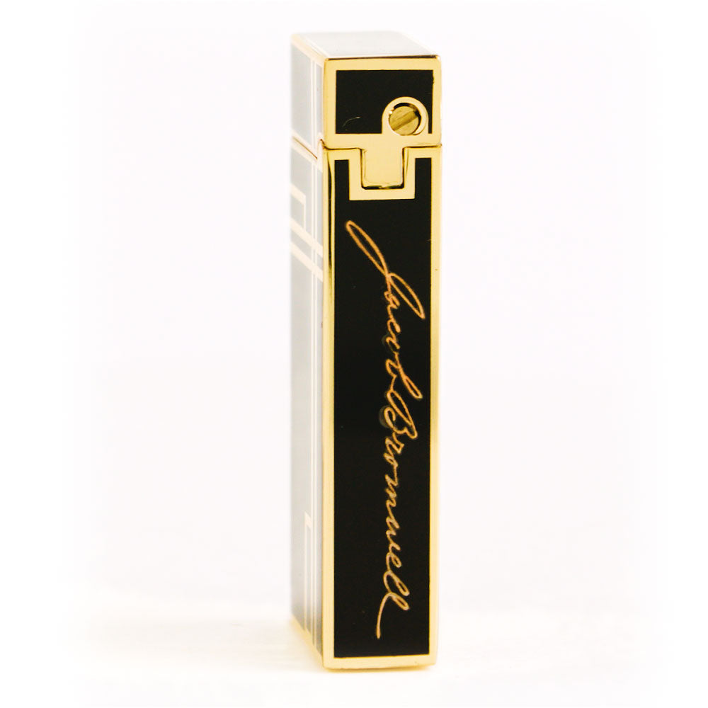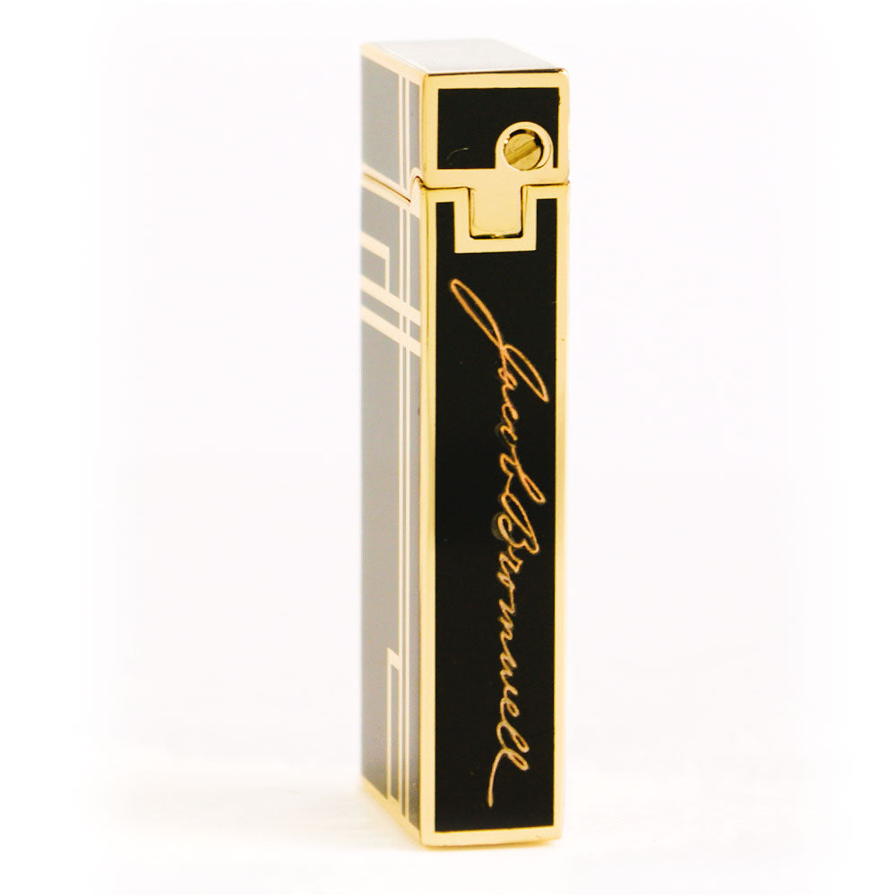 The Prestige is our debut luxury lighter—hand-finished to perfection, unapologetically refined, and crafted to last for generations. Each lighter is coated in deep, piano-black lacquer, applied painstakingly in multiple layers to achieve a mirror-smooth surface, then detailed with brilliant golden accents worthy of Old Hollywood. In the hand, it feels weighty and confident—its Art Deco profile recalling an era when design and engineering walked arm in arm. The precision-machined rolling strike produces a flawless ignition every time, while a warm, windproof yellow flame glows at your command, adjustable for every occasion. Bearing the engraved Jacob Bromwell® marquee and presented in a distinguished gift box, The Prestige is more than a lighter. It’s a statement. A future heirloom. A spark of American heritage carried in your pocket.