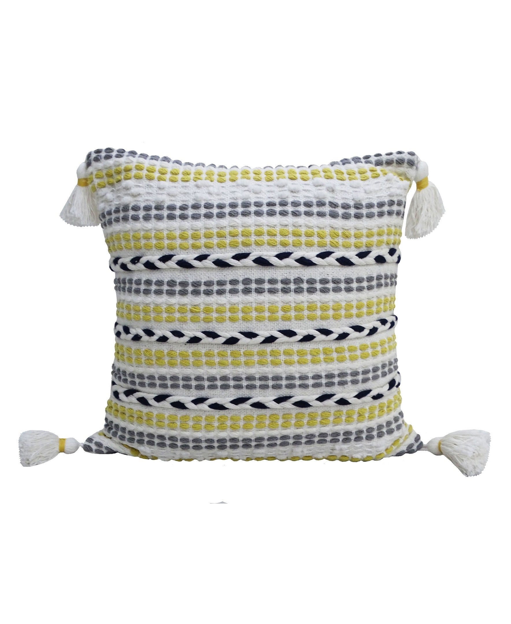 20 inches X 20 inches handwoven pillow with braids