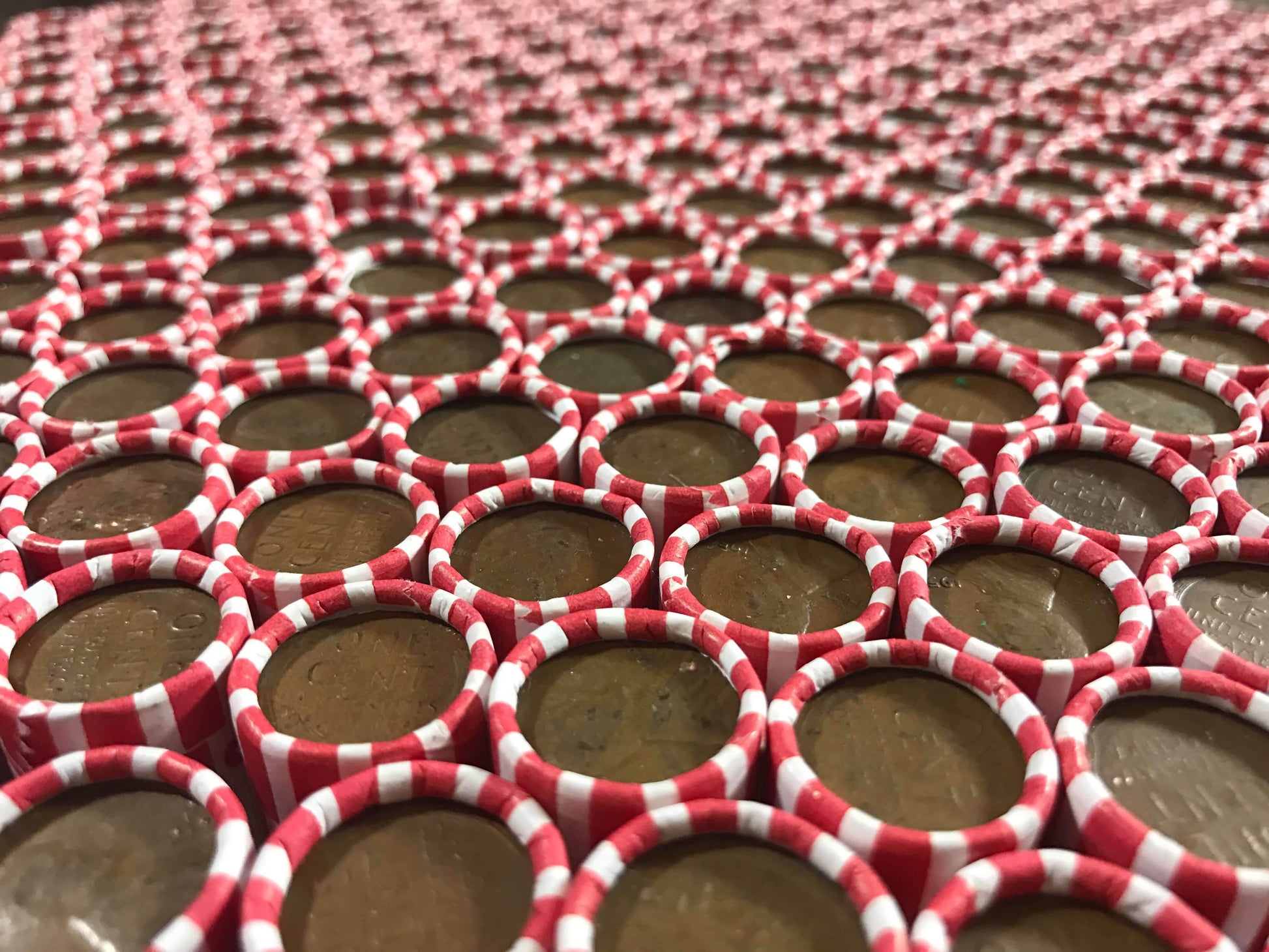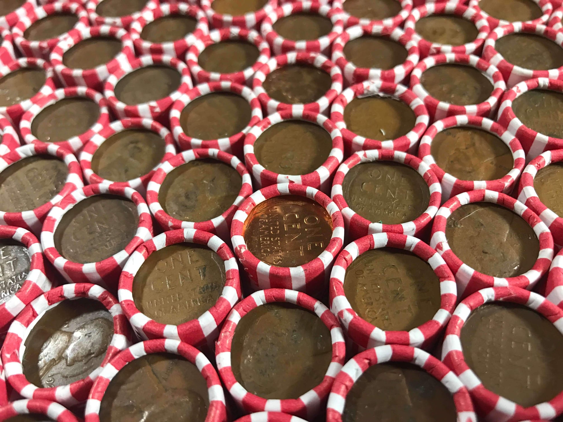 TIGHTLY CRIMPED WHITE BANK WRAPPED ROLLS OF OLD WHEAT PENNIES