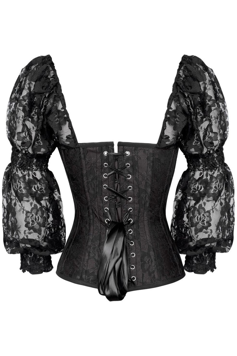 Top Drawer Black w/Black Lace Steel Boned Long Sleeve Corset
