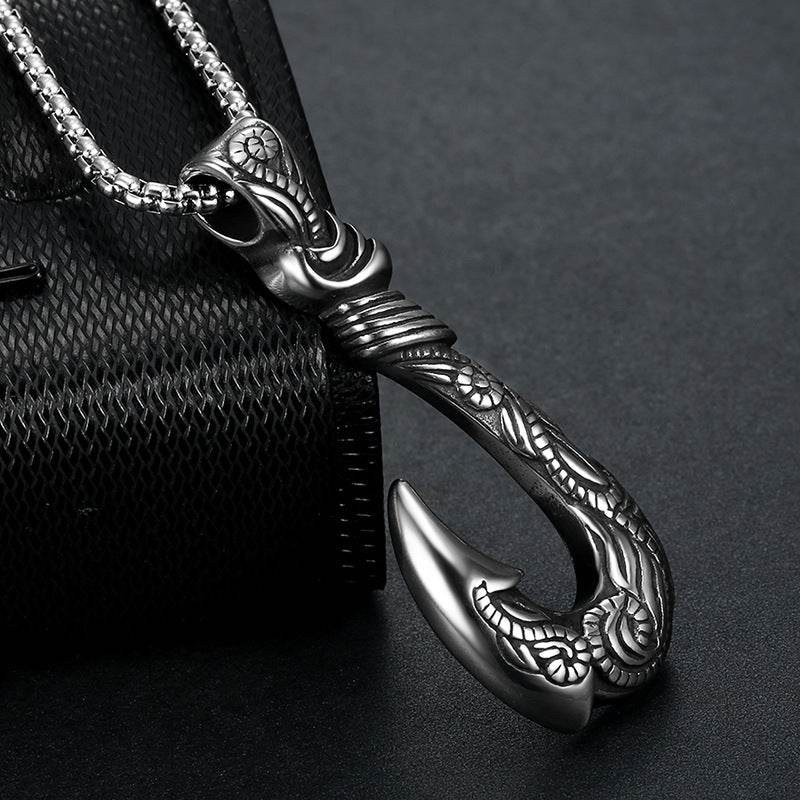 Vintage Stainless Steel Ocean Romance Fish Hook Titanium Steel Pendant