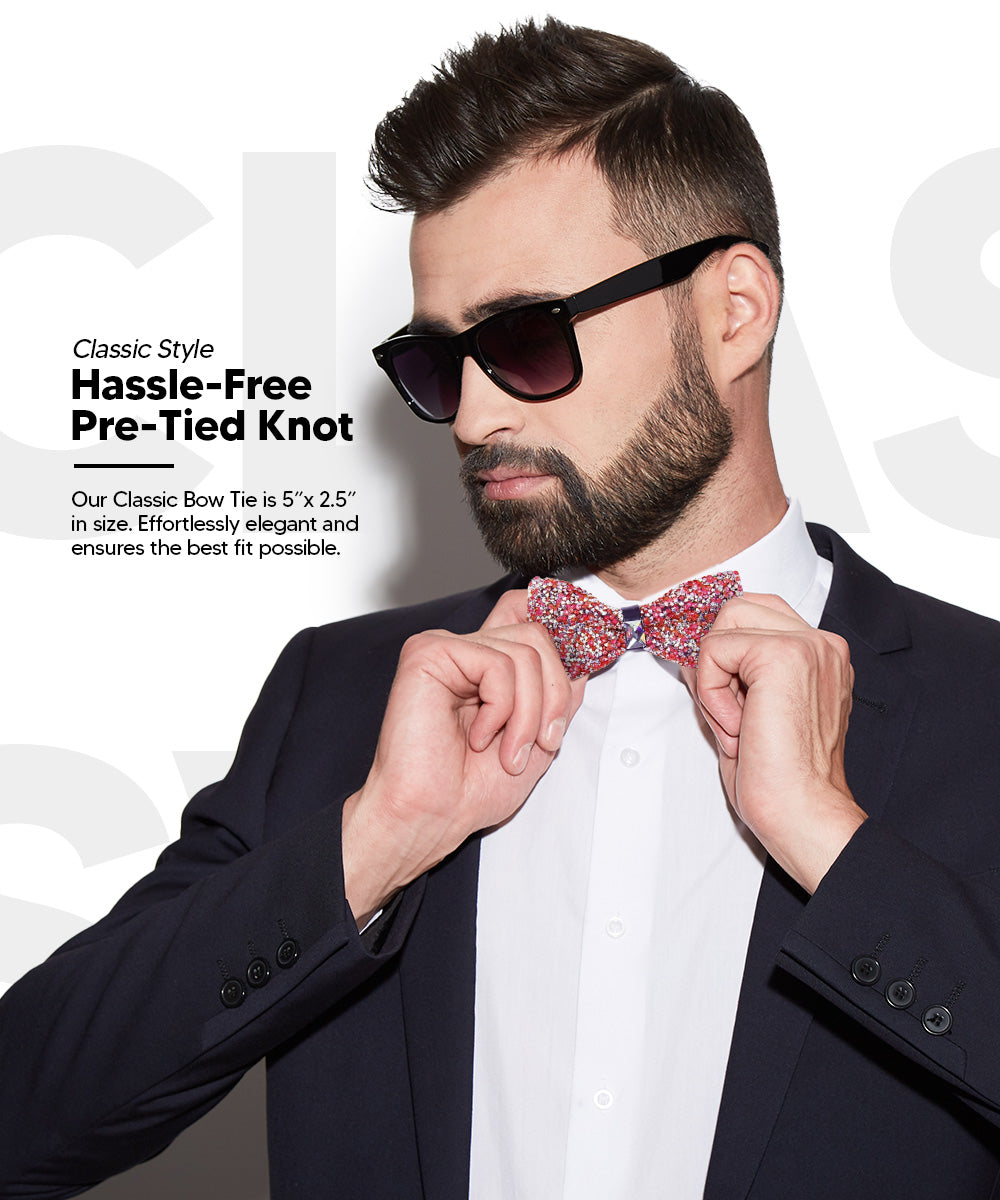 - STYLISH: Sometimes the smallest details can make the biggest difference. Men’s Vibrant Colorful Rhinestone Bow Tie is the perfect accessory for your shirt, blazer, suit or tuxedo.