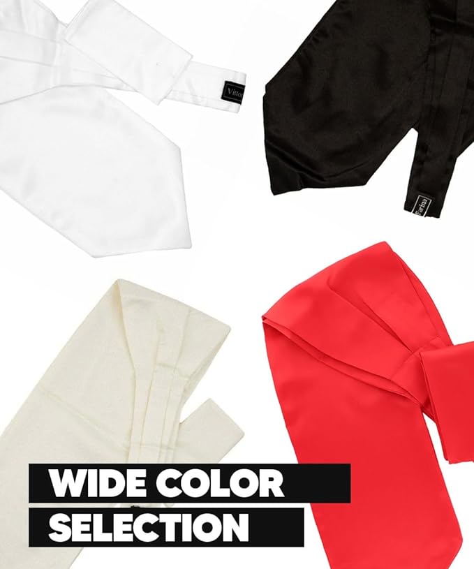 • VARIETY: Our Solid Satin Ascot & Pocket Square come in a variety of designs and colors! Checkout our Bow Tie, Cravat and Necktie designs in our store, we have a style for any event.