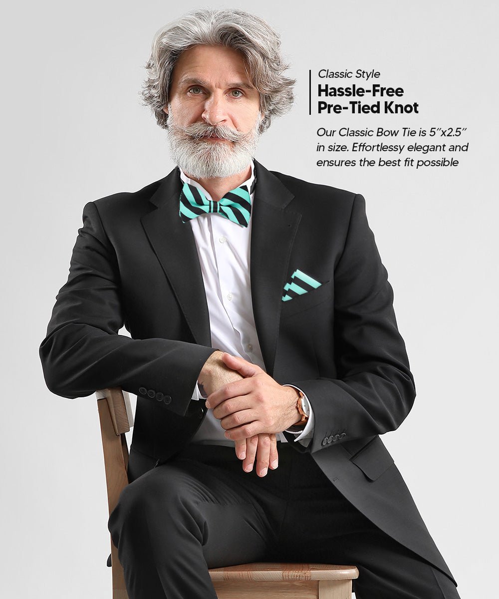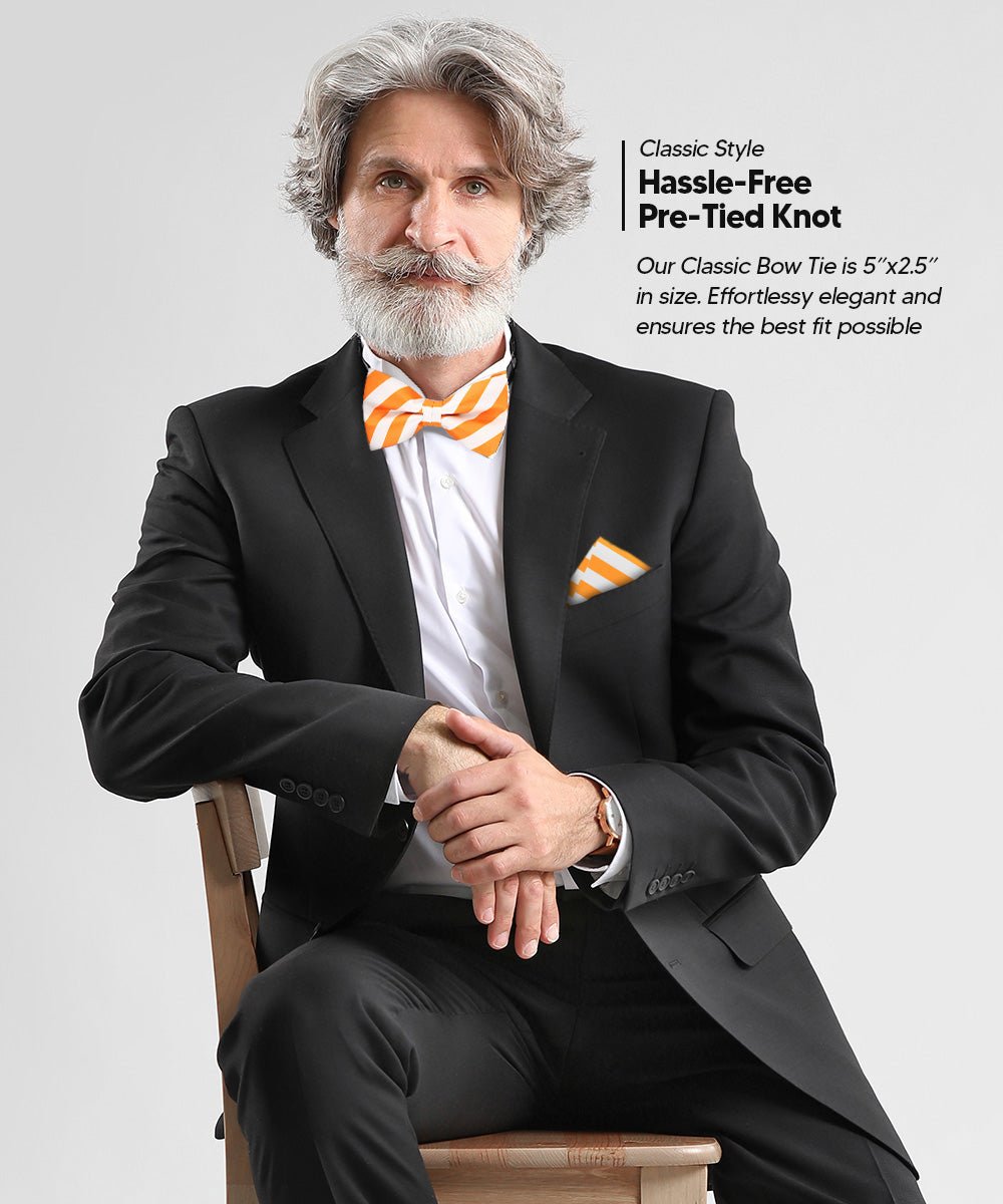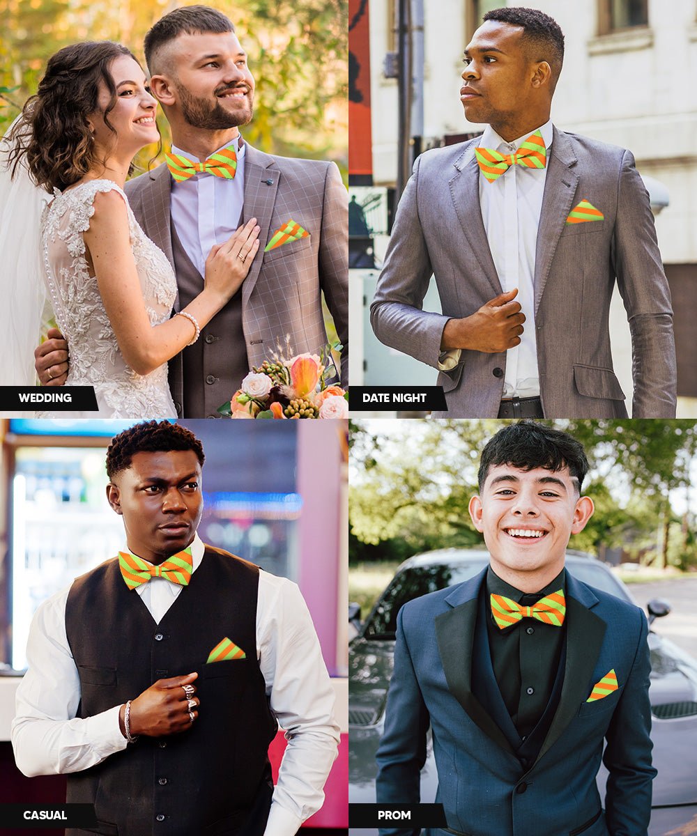 - STYLISH: Sometimes the smallest details can make the biggest difference. Men’s Vibrant Colorful Striped Bow Tie & Pocket Square is the perfect accessory for your shirt, blazer, suit or tuxedo. The stylish Pocket Squares for men add a stylish touch.