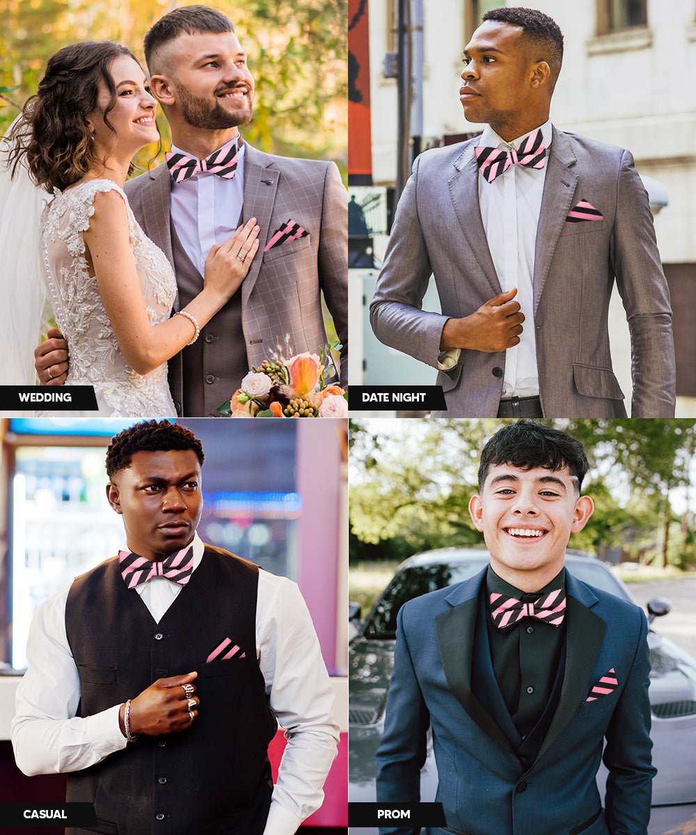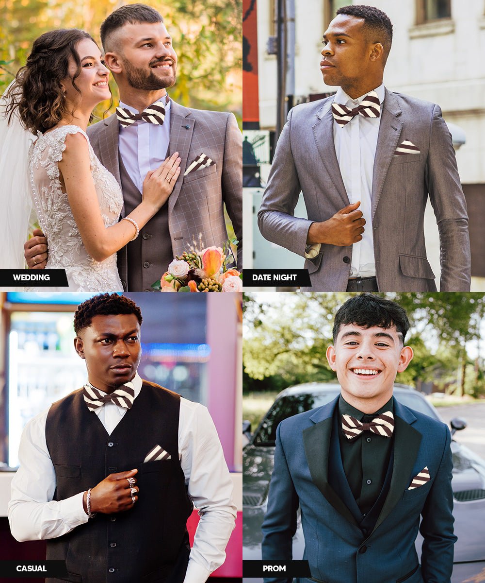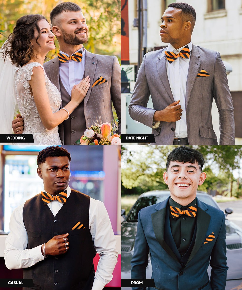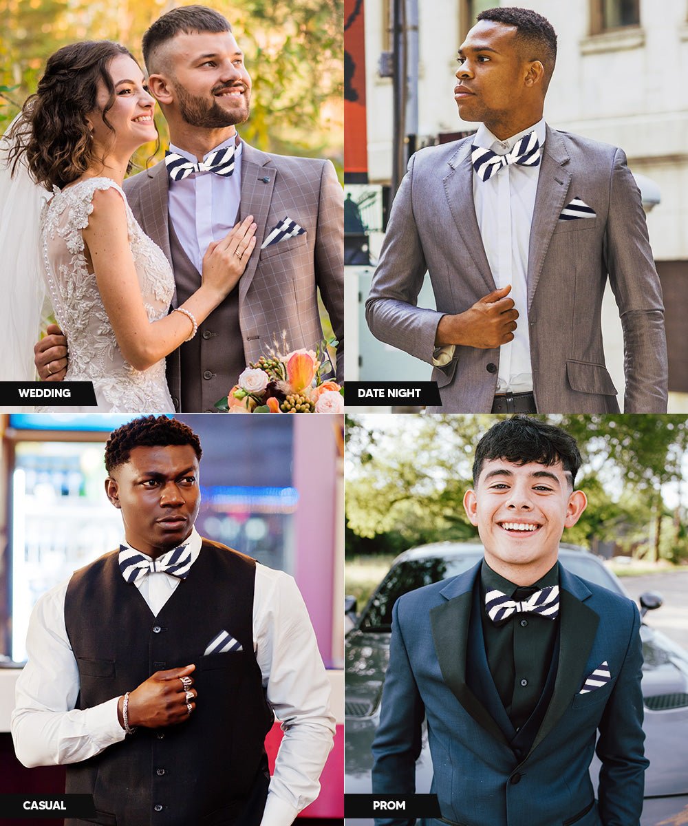 - STYLISH: Sometimes the smallest details can make the biggest difference. Men’s Vibrant Colorful Striped Bow Tie & Pocket Square is the perfect accessory for your shirt, blazer, suit or tuxedo. The stylish Pocket Squares for men add a stylish touch.