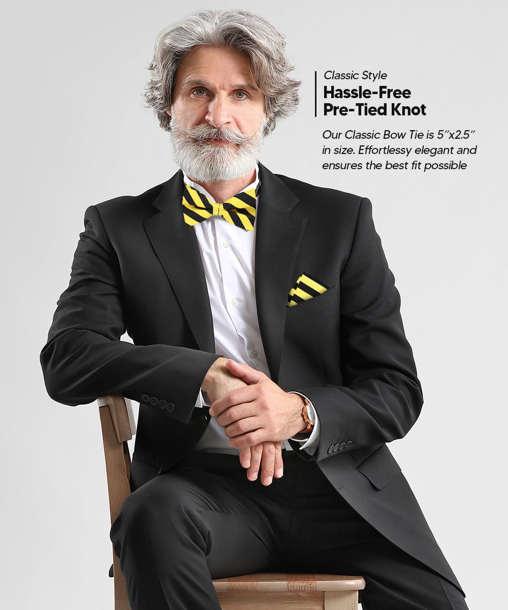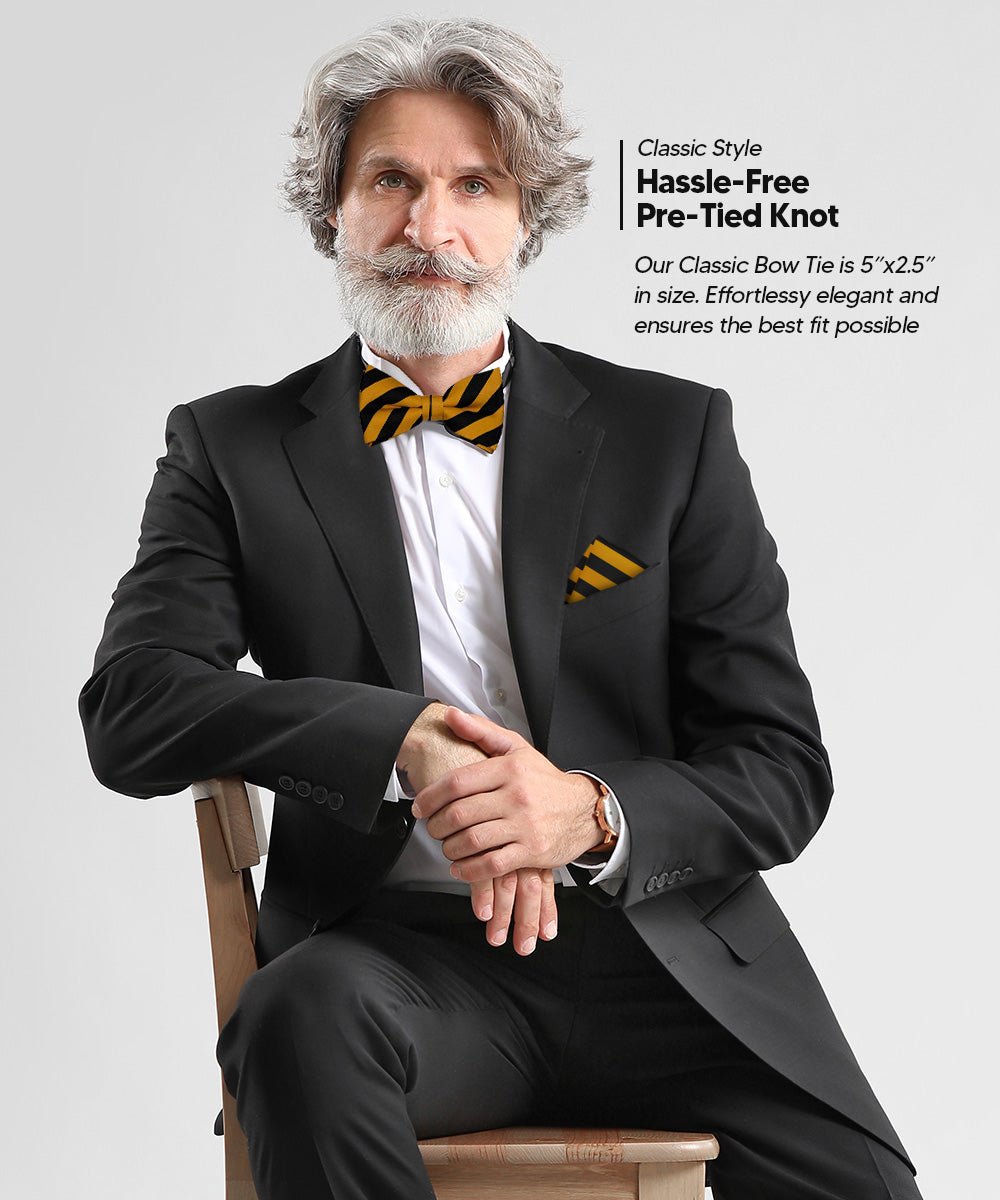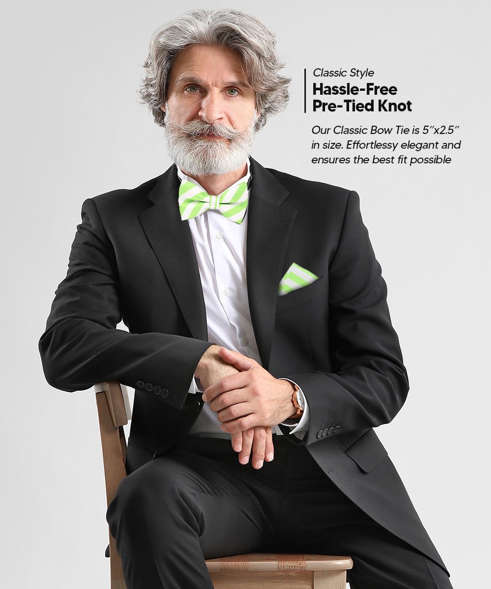 - VARIETY: Our Vibrant Colorful Striped Bow Tie & Pocket Squares come in a variety of colors! Checkout our Ascot, Bow Tie and Necktie designs in our store, we have a style for any event.