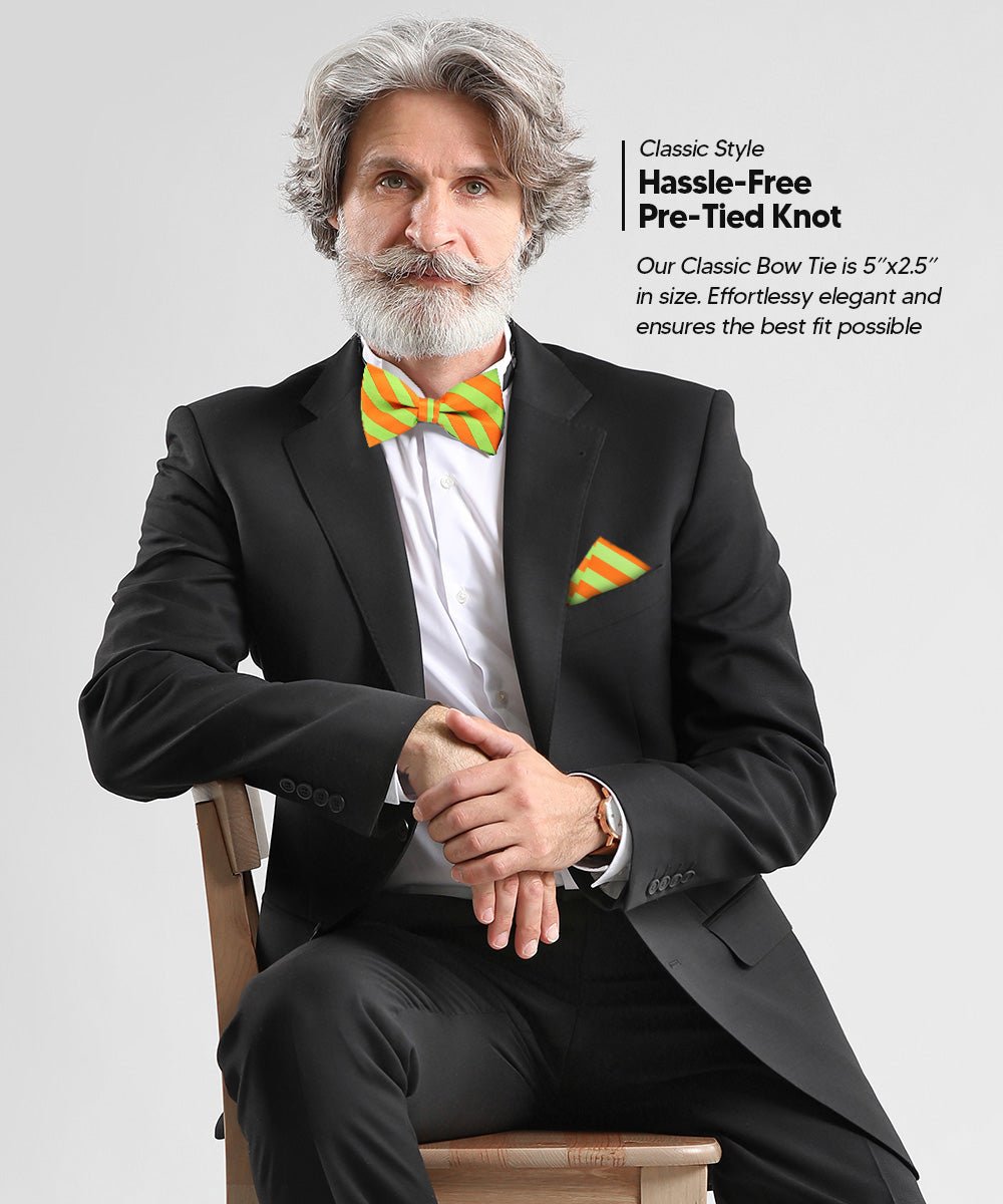 Vittorio Farina Vibrant Colorful Striped Bow Tie & Pocket Square: Accessories for Shirt, Blazer, Suit or Tuxedo