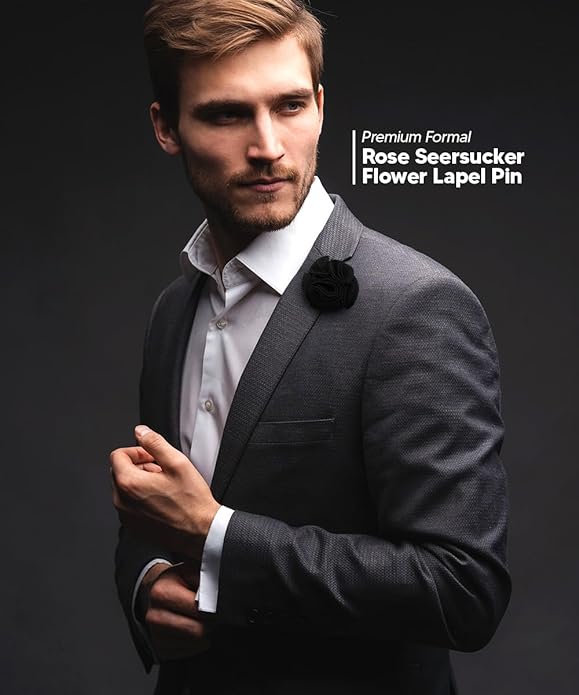 - STYLISH: Sometimes the smallest details can make the biggest difference. Men's Solid Rose Seersucker flower lapel pin for suits is the perfect suit accessory for your blazer. The stylish pins for men add a stylish touch to your formal wear. You can even add this to your tie as a tie pin!