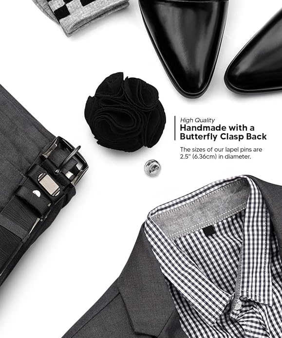 - MATERIAL / SIZE: Handmade with a Butterfly Clasp Back. The sizes of our lapel pins are 2.5" (6.36CM) in Diameter. The size is perfect to wear alone or add a few pins to create a bouquet boutonniere pin.